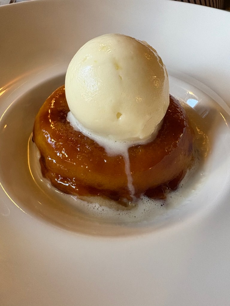 También se lucen en postres originales, como el cruasán planchado con helado, aunque hoy hemos optado por la suculenta torrija de donut (caramelizada y jugosa) con fresca piña colada y sorbete de piña. Es una manera de hacer excelente algo tan grasiento y azucarado como un donut normal.