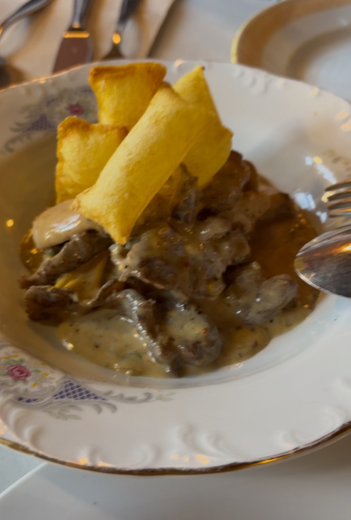 Había que probar alguna carne y el bocado de la reina (el famoso corte del carnicero) a la Stroganof es tan perfecto que muestra la excelente formación clásica del chef.