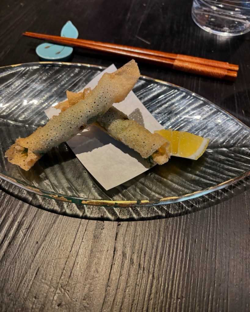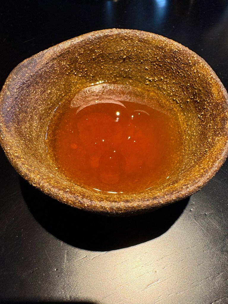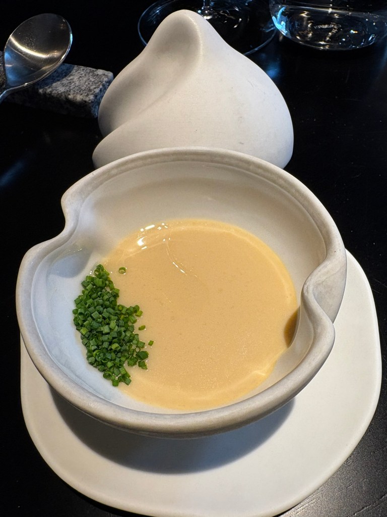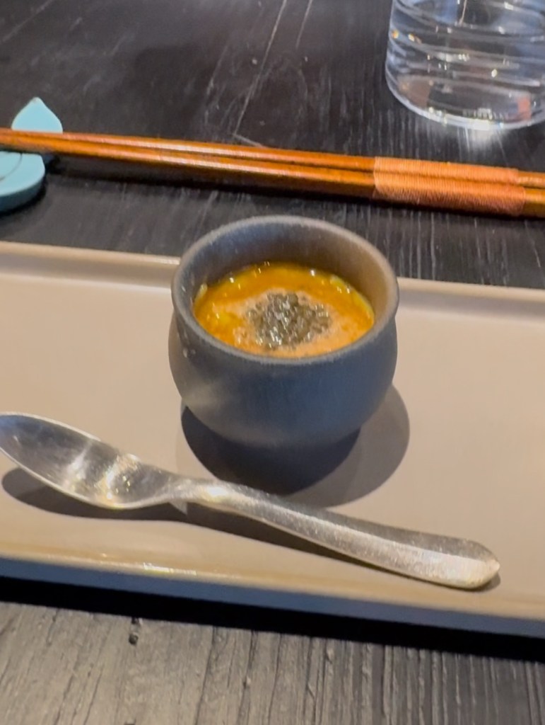 Después una royal de pollo a la brasa con un rico toque picante, pero cuya textura no me ha gustado nada porque parecía cortada. Ni cuajada, ni flan, ni chawamusi.