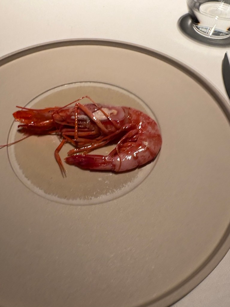 Hay también en este festín gambas rojas de Palamos bañadas en alga kombu y que se acaban delante de nosotros en grasa de orza, lo que les da un toque inesperado a carnes antiguas y recias.