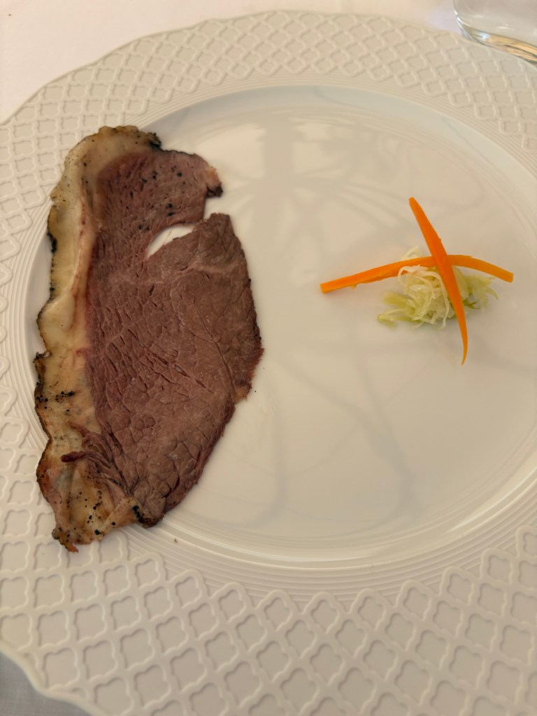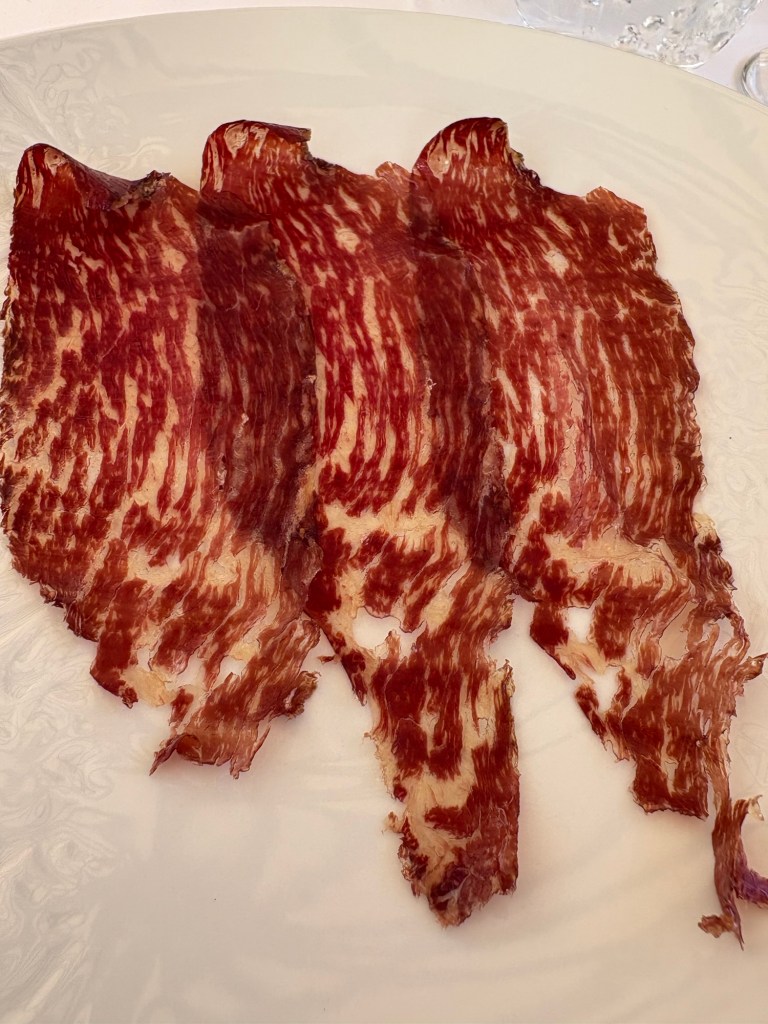 La cecina, que semeja mármol veteado es la mejor que he probado, y la morcilla de buey, más sabrosa, elegante y sumamente cremosa.