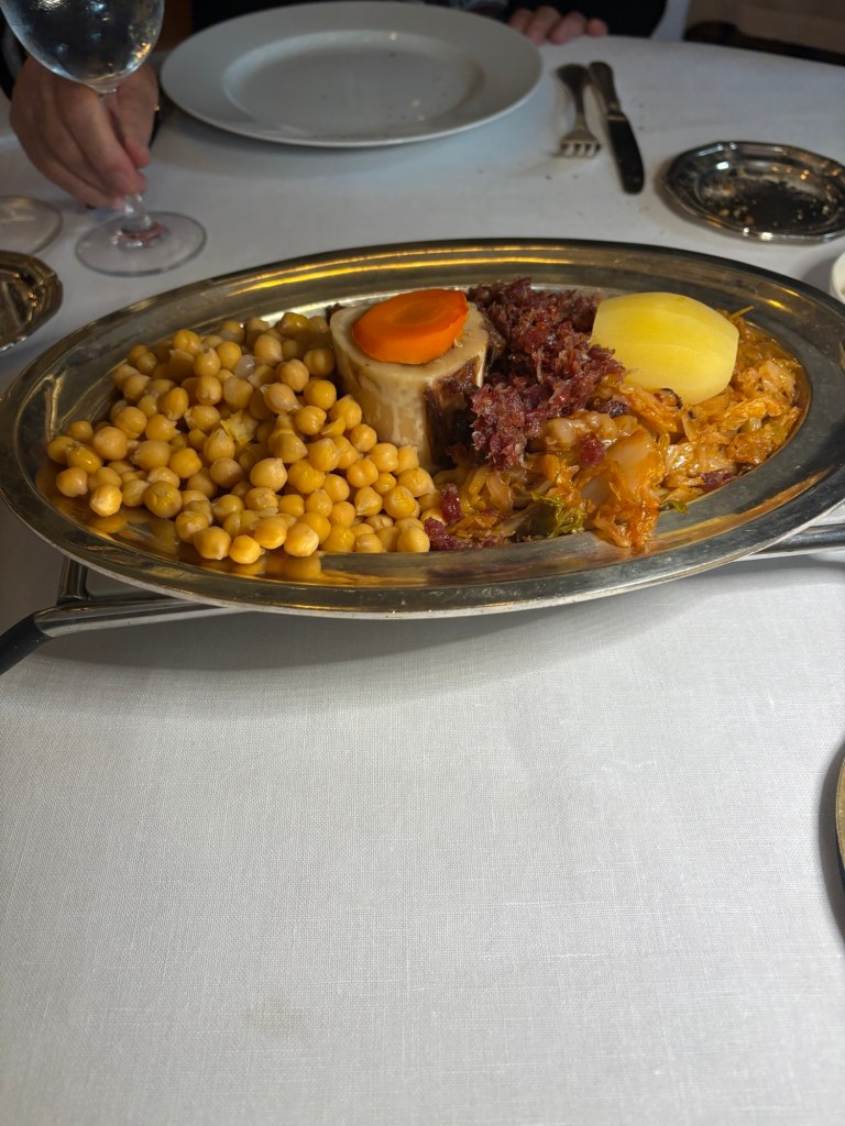 El cocido nunca falla y es el mejor de Madrid, con una abundancia de productos impresionante. Para compensar una espléndida cigala, porque perteneciendo a Pescaderías Coruñesas, pescados y mariscos nunca fallan.