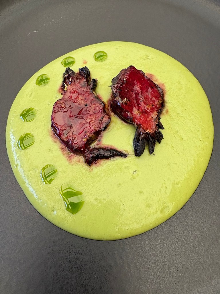 Por ejemplo, las delicadas remolachas baby con crema de aguacate, limón, chile güero y aceite de cebollino o la carnosa endivia a la brasa con emulsiones de punzante ajo negro y ácido labne (yogur colado, tan típico del Mediterráneo oriental como de México).