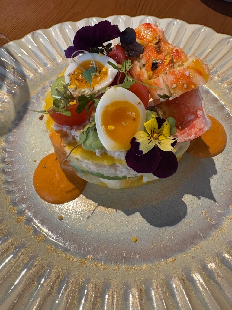 La causa, un plato clásico de la cocina peruana hecho a base de patata amarilla prensada y sazonada con limón, ají y aceite, que se sirve en frío y en capas, rellena de distintos ingredientes- siempre está muy buena, pero si se enriquece con una buenísima pata de cangrejo de Alaska, el resultado es espectacular.
