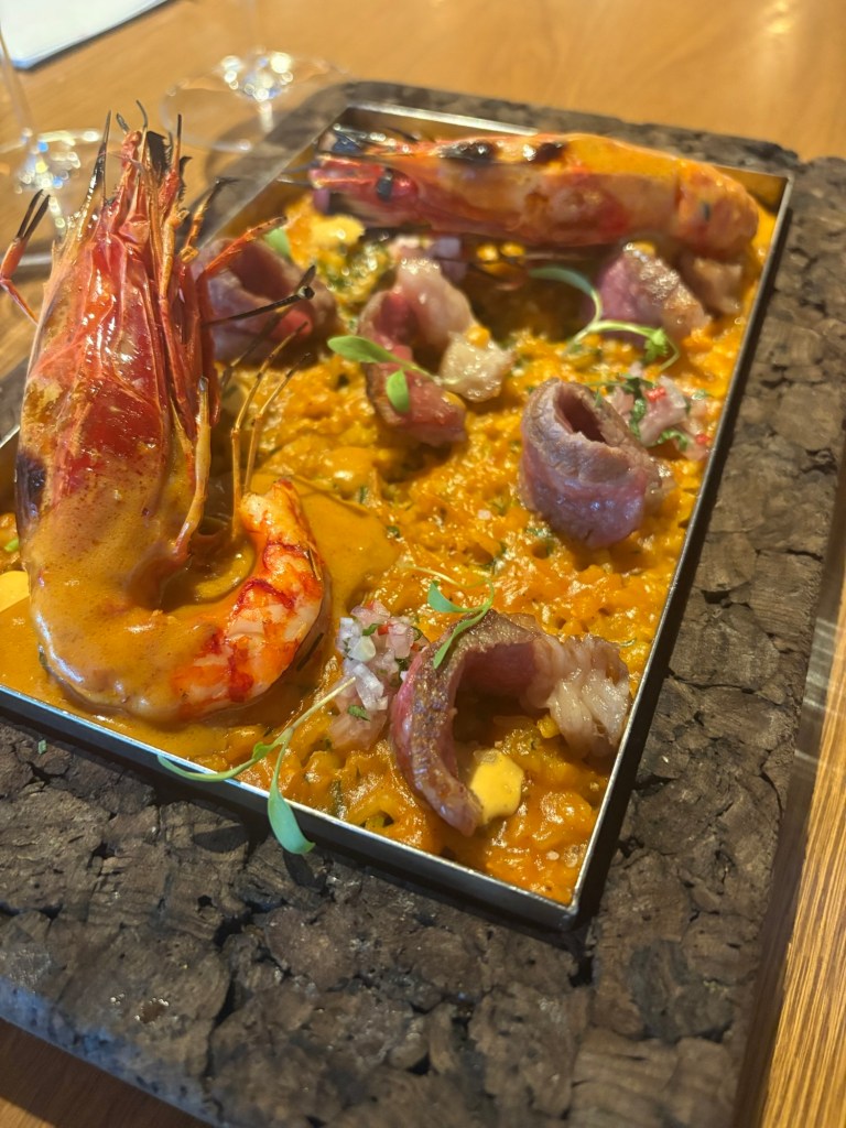 El chef, se ha atrevido con un arroz mar y montaña, buena carne y mejor marisco, que combina la tradición de ambos países con un toque picante de ají y un fuerte sabor cítrico. Hecho a la llauna es una gran idea, pero resultará mucho mejor cuando el punto del arroz -que ahora parece más el de un risotto– se ajuste a los gustos españoles.