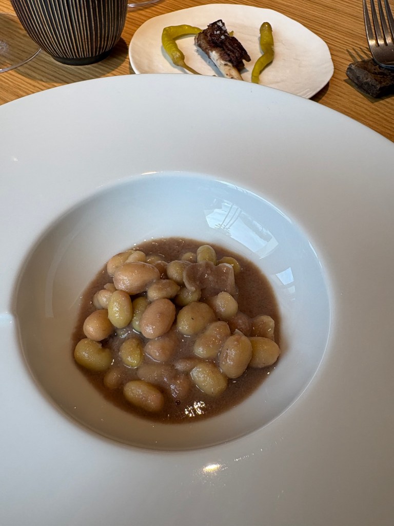 Las pochas con jabalí y su costilla con piparras, es un guiso perfecto en el que se nota la lentitud.
