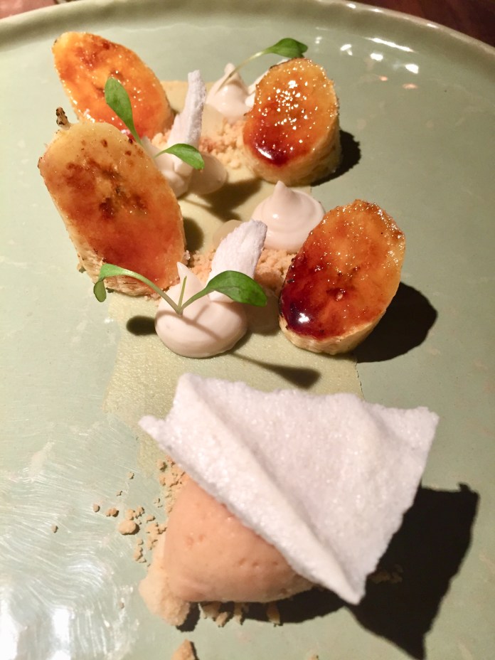 Los postres son también muy buenos. Las texturas de mango se enriquecen con fruta de la pasión y coco y para rematar el conjunto y dar un toque crocante a las ternuras de helados y pastelitos se usa el sésamo negro quemado en forma de crujiente.