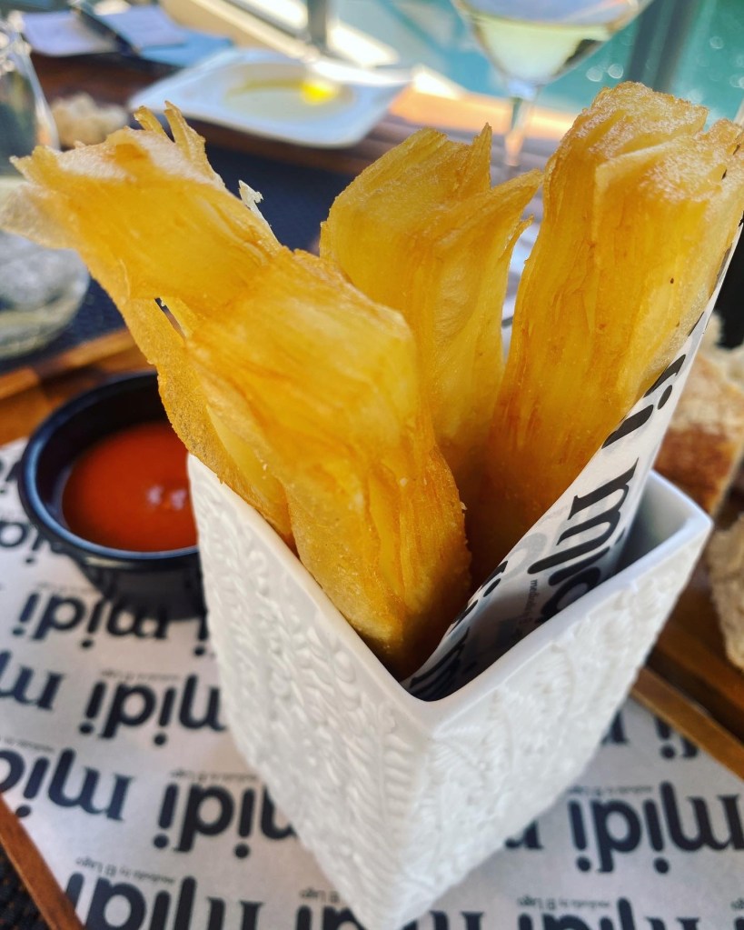 Y para acabar el capítulo de pescado y mariscos, un soberbio bogavante gallego con patatas fritas que crujen y huevos de yema suelta y clara tostadita. Una receta sencilla pero que hay que saber hacer con mimo, no a lo bestia como en sitios de moda de infausto recuerdo en Ibiza y Formentera. Por cierto, aquí, con playas igualmente bellas, a 38€ la ración, no a 75 o más…