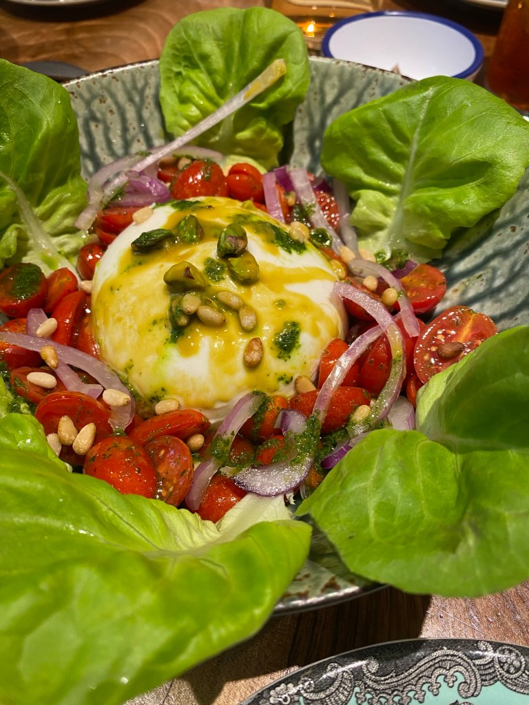Aunque hay un buen menú, hemos preferido la carta y de ella cinco platos para dos (tal y como recomiendan). Así, se comienza con sabrosa agua de tomate a la brasa con aceite de chimichurri, un consomé frío y lleno de sabor gracias al braseado del tomate.