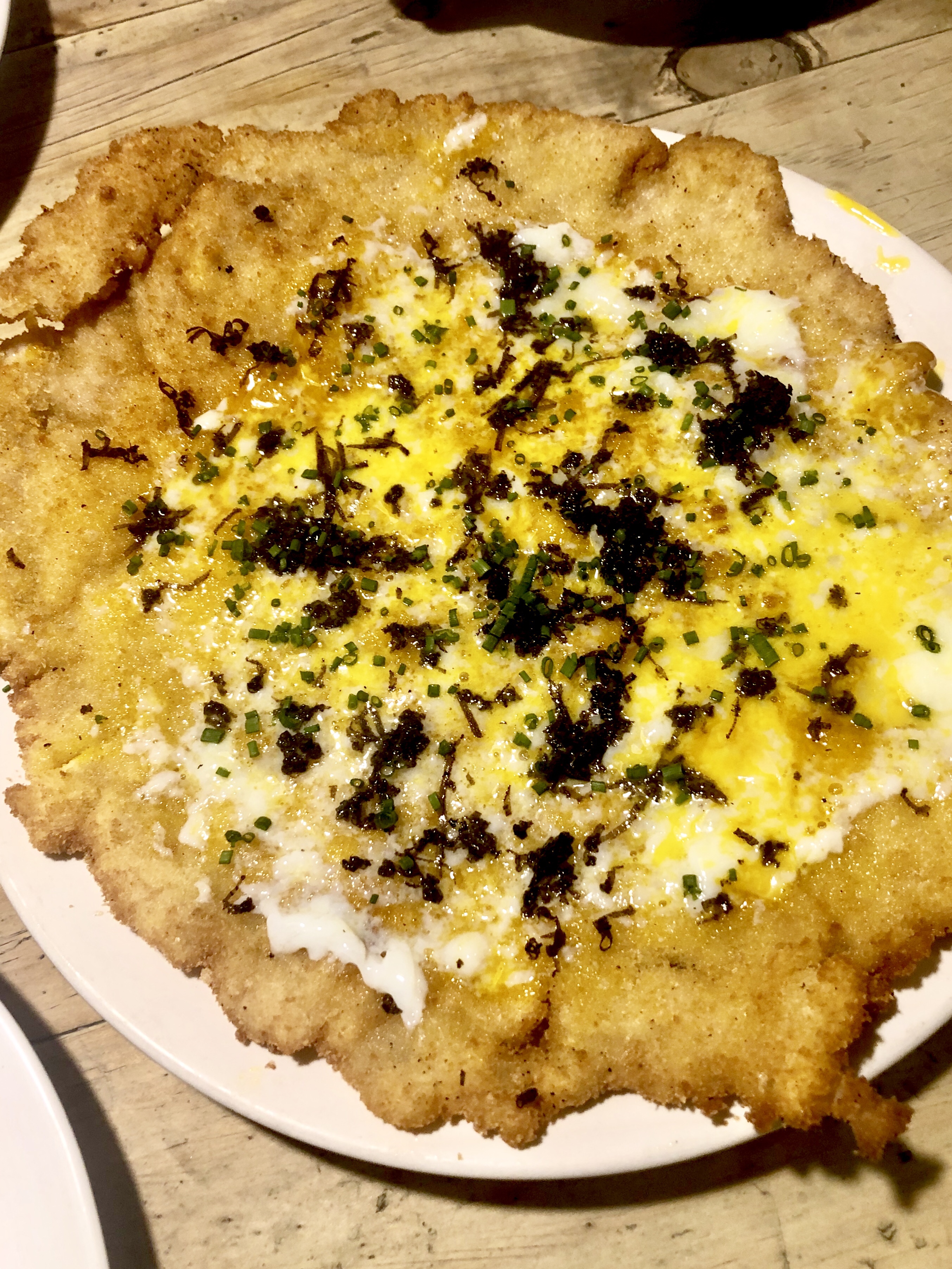 Ya he hablado varías veces de Fismuller, el devastado -ya saben, estilo nórdico- y estiloso restaurante de Nino Redruello, un buen y emprendedor cocinero, descendiente de una saga muy querida en Madrid. Sin embargo, nunca lo había hecho del famoso escalope que tanto está dando que hablar y eso me da un buen pretexto para volver sobre el tema.