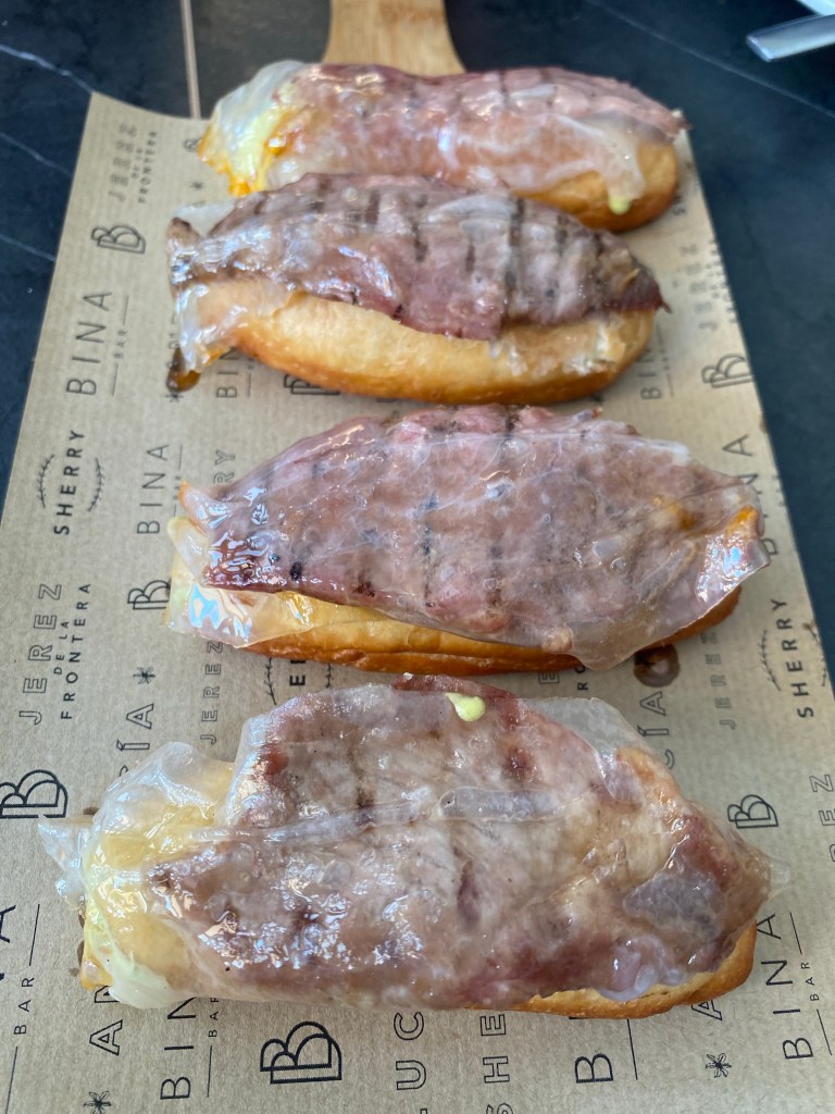 Casi no había empezado en Bina bar, el proyecto más popular y desenfadado de Juanlu Fernández, y ya estaba pensando que ojalá tuviera yo un sitio así cerca de casa. O al menos, en la misma cuidad. Y es que todo apetece y está hecho con tan buenos productos y tal mimo que es un buen restaurante disfrazado de bar. También aquí, este gran chef artífice del magnífico Lu Cocina y Alma, se luce con su gran técnica y hasta con salsas francesas o afrancesadas, todo al servicio de un gran producto y como modo de realzar el recetario popular andaluz.