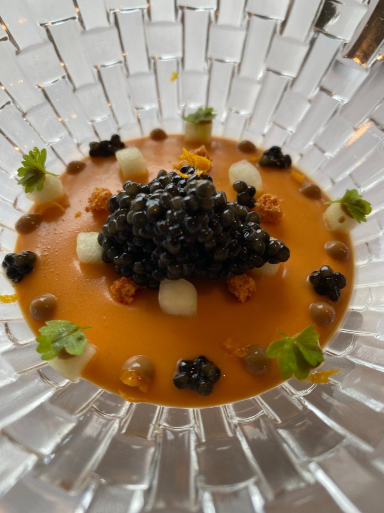 La técnica, la sensibilidad y el conocimiento crean platos que saben a pasado pero anticipan el futuro. Pero no solo está el pueblo. Por este menú pasan Escoffier, Ruperto de Nola y Ángel Muro con su Practicón en un alarde de sabiduría y sensibilidad.