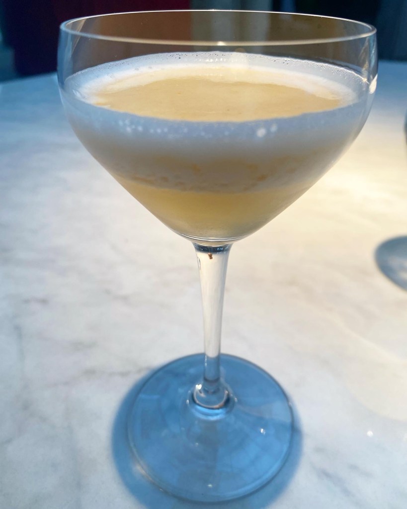 Y después una broma en forma de cóctel (fruta de la pasión, aguas de rosas y azahar y algo de Bourbon) y que se llama “beberse el agua de los floreros”, porque la base -que después agitan y refuerzan en coctelera- estaba en uno (con sus flores y todo) que nos habían puesto como decoración antes de los quesos.