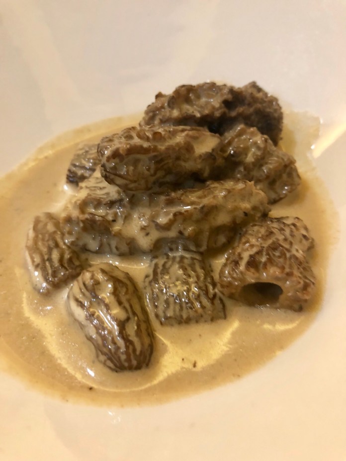 Y tras la reina, la princesa, colmenillas -muy frescas y suaves, no acartonadas como tantas veces- con salsa de foie, una salsa que sabe lo justo para apreciar el hígado de pato sin robar nada a la seta.