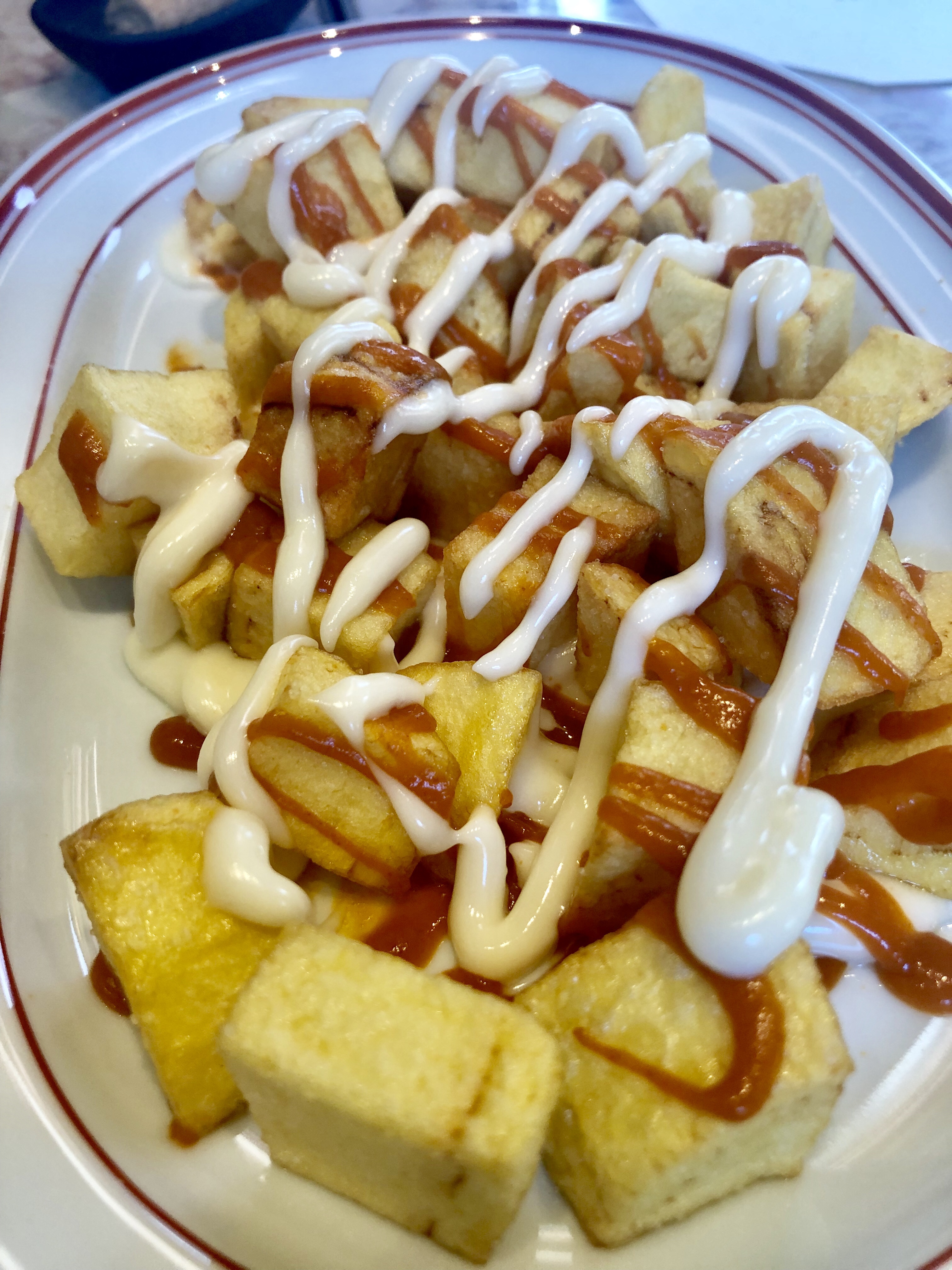 Estupendo también el salmonete con guiso muy portugués de patata, pimiento y cebolla y una gran salsa de las espinas y aceite de tomate. Para que algo cruja, un puñadito de humildes y siempre ricos garbanzos.