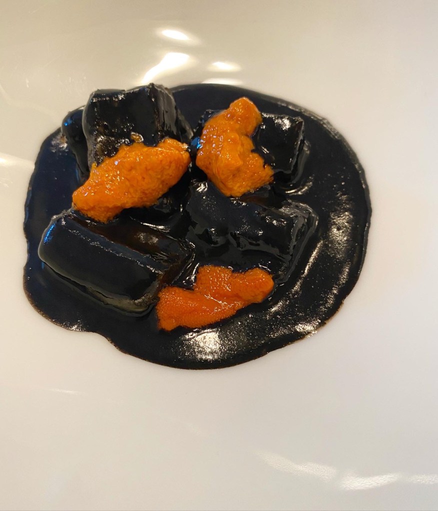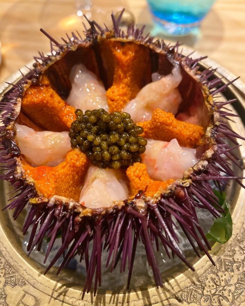 a una espléndida royal de erizo, que es puro sabor a erizo concentrado y en la que se mantiene su maravilloso sabor mejorando su textura. Ahora lleva algo de caviar y eso ya se sabe, es apuesta ganadora. Un plato que nunca me canso de probar, tan intenso como elegante.