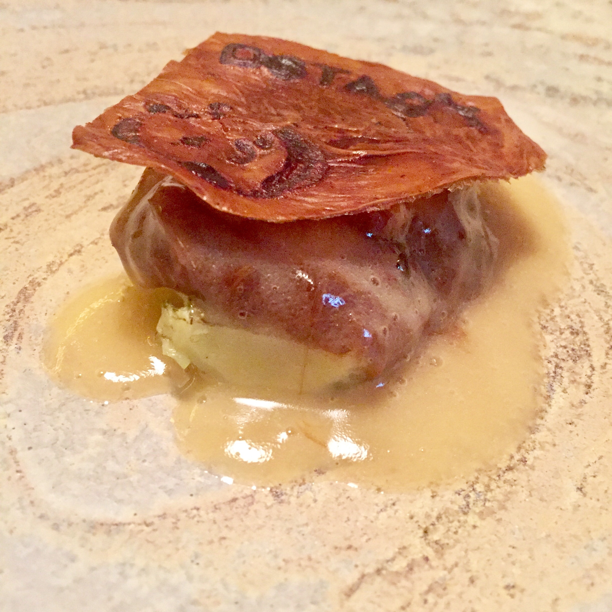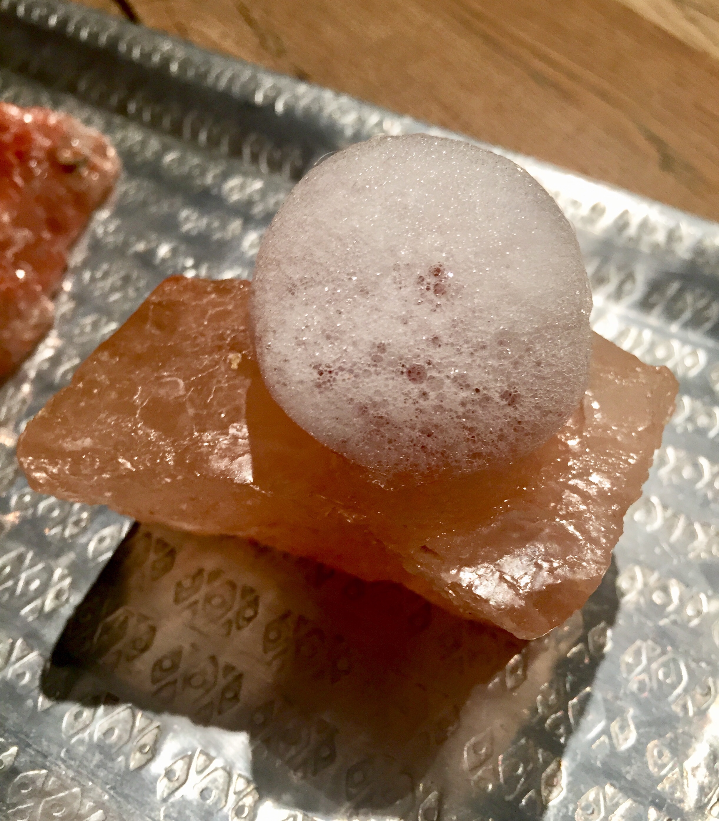 Las alcachofas confitadas, praliné, fondo de jamón y hierbas aromáticas son tan diminutas como sabrosas y se envuelven en un caldo avellanado excepcional y es que, ya tardaba en decirlo, Joseán es un mago en esto de los caldos, que clarifica y embellece con maestría, dotándoles además de intensos sabores.