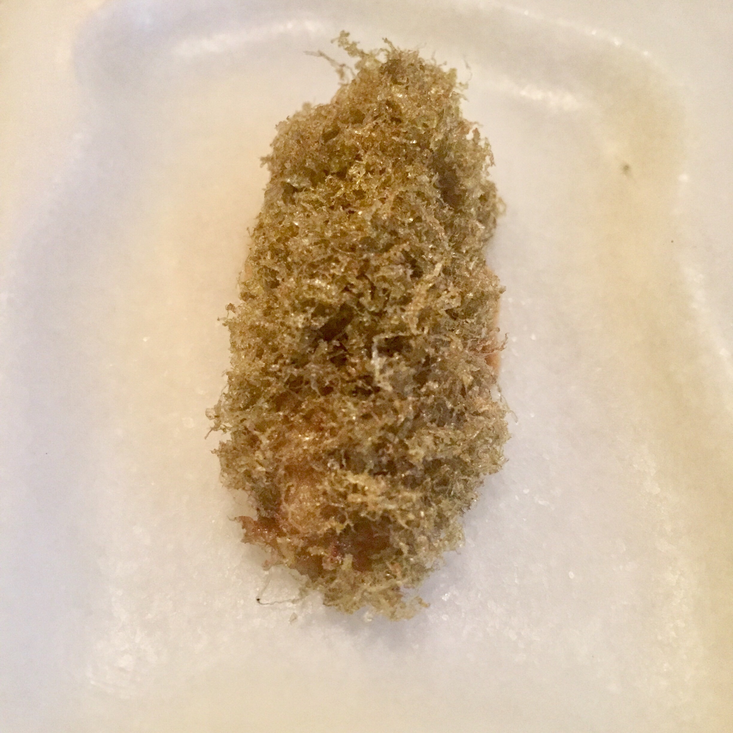 y la explosión de una croqueta de huevo que es en realidad un huevo frito en tempura que estalla en la boca sin perder un ápice del tradicional sabor, pareciendo croqueta pero siendo huevo…