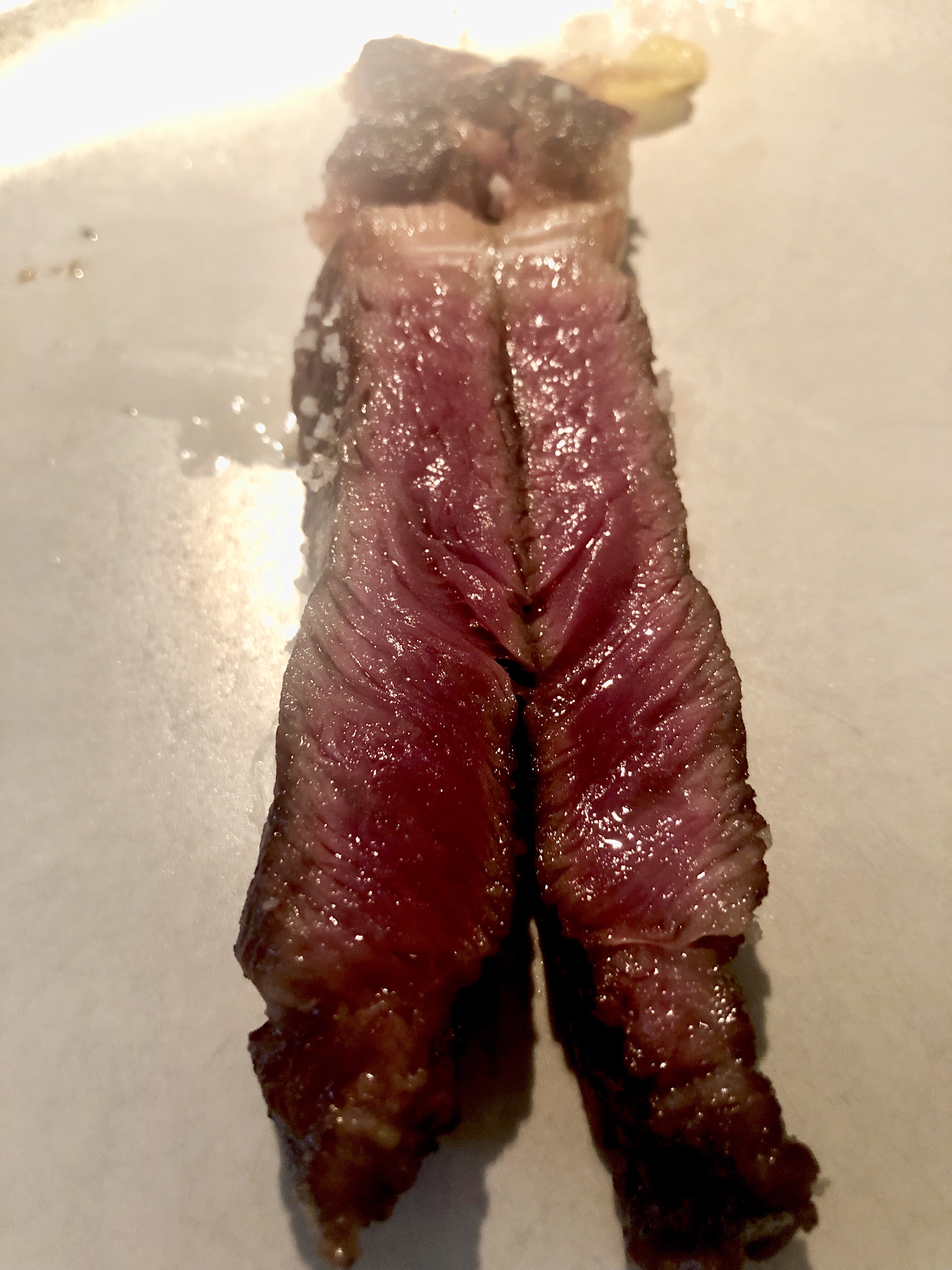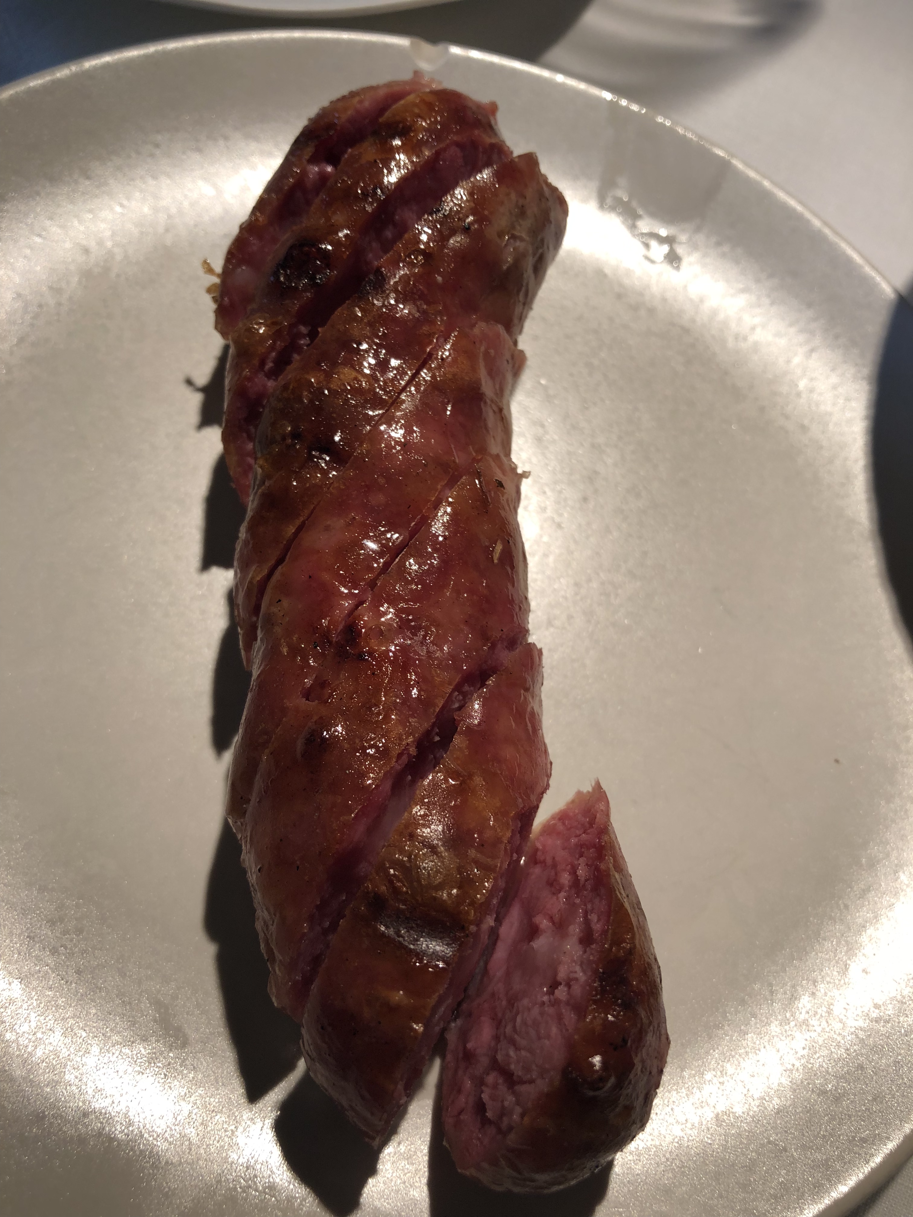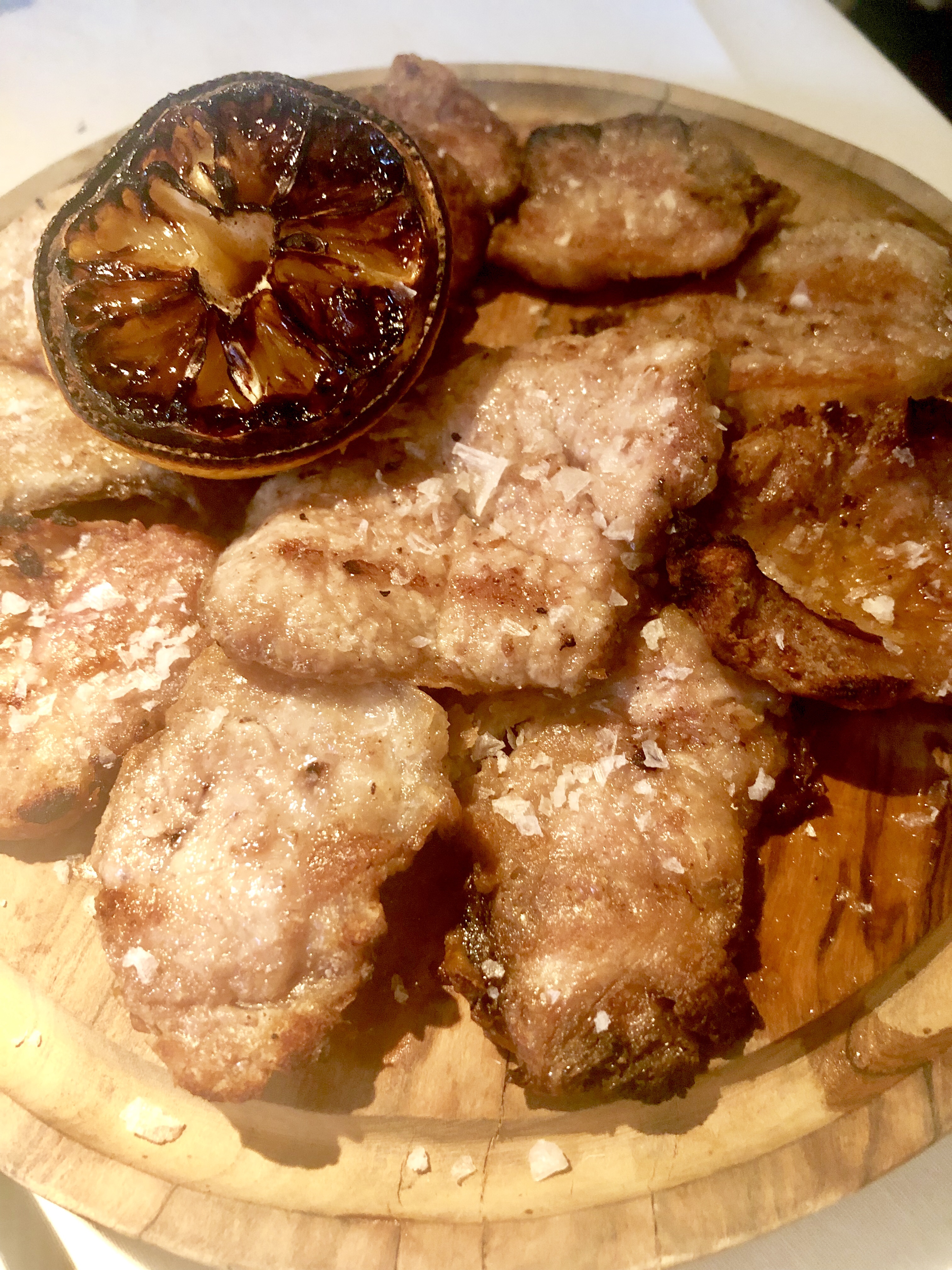 También un embutido de toro bravo elaborado por ellos mismos, un macarrón de pimentón de la Vera con torta del Casar, una papa canaria (que por supuesto no lo es, aunque sabe mucho más) con mojo rojo o un muy elegante corte helado de naranja y champagne que se deshace apenas se introduce en la boca. Pura magia.