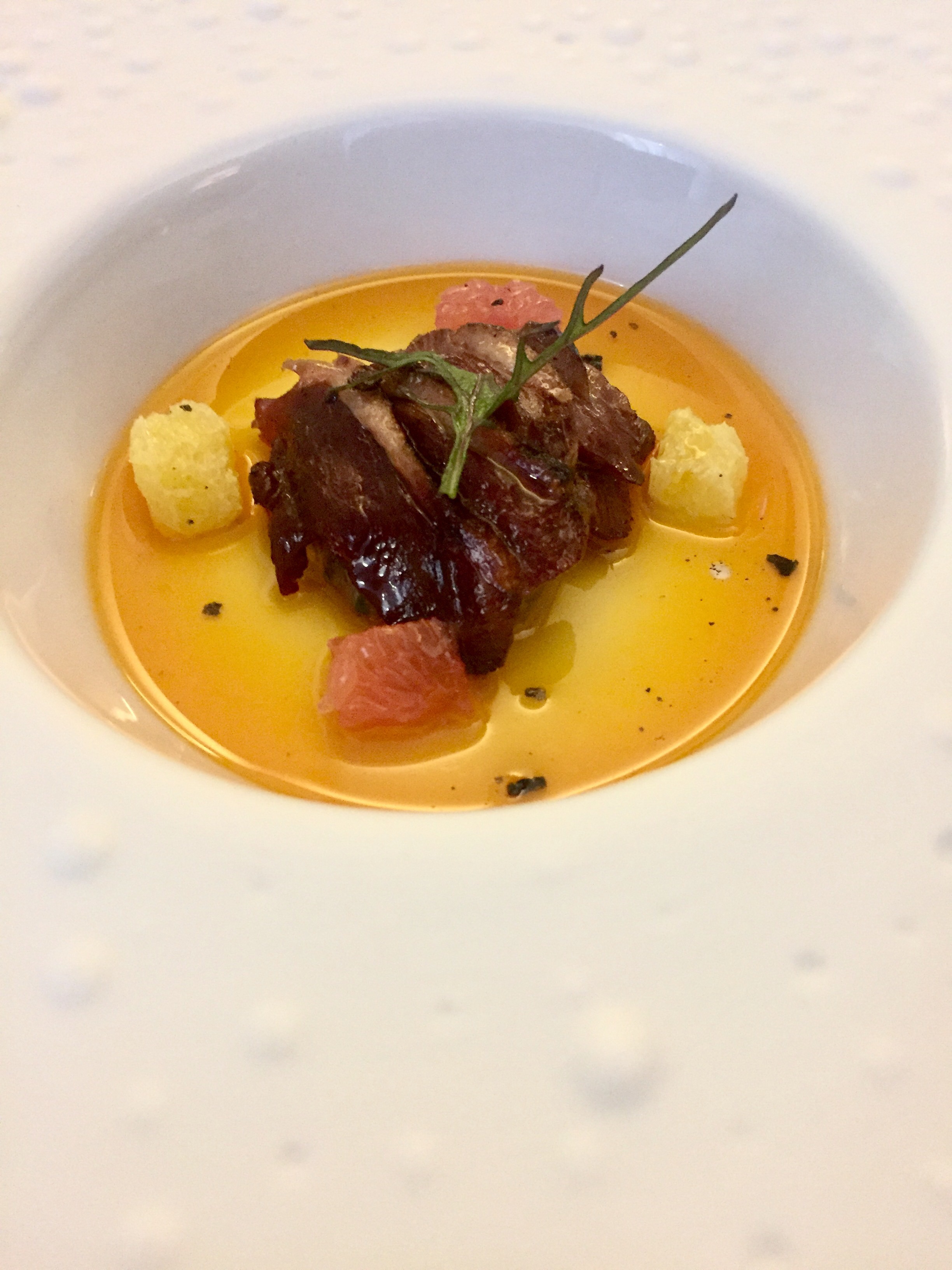 Segundos cazadores y deslumbrantes: la imponente perdiz a la prensa, cuya carcasa prensada al momento forma parte de la salsa que se comienza a preparar en cuanto se ordena. Esta es un mezcla de salsas inglesas y española y desprende tantos aromas a brandy y oporto que es una bendición. Toda la preparación se hace lentamente ante el comensal y es un espectáculo en sí mismo pero es que además, la perdiz está sensacional. Pura historia.