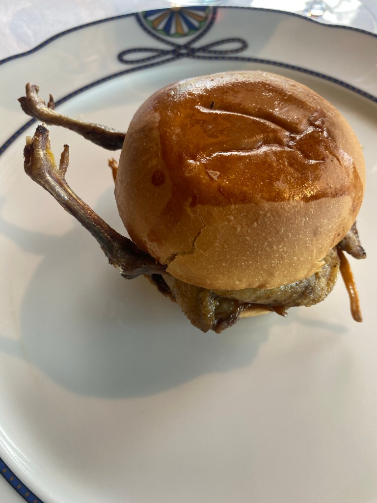 Llega tras los mariscos y demás aperitivos, una de esas frituras que este chef súper dotado hace como nadie. Es una raya en adobo suculenta y que queda. Crujiente por fuera y tremendamente jugosa por dentro.