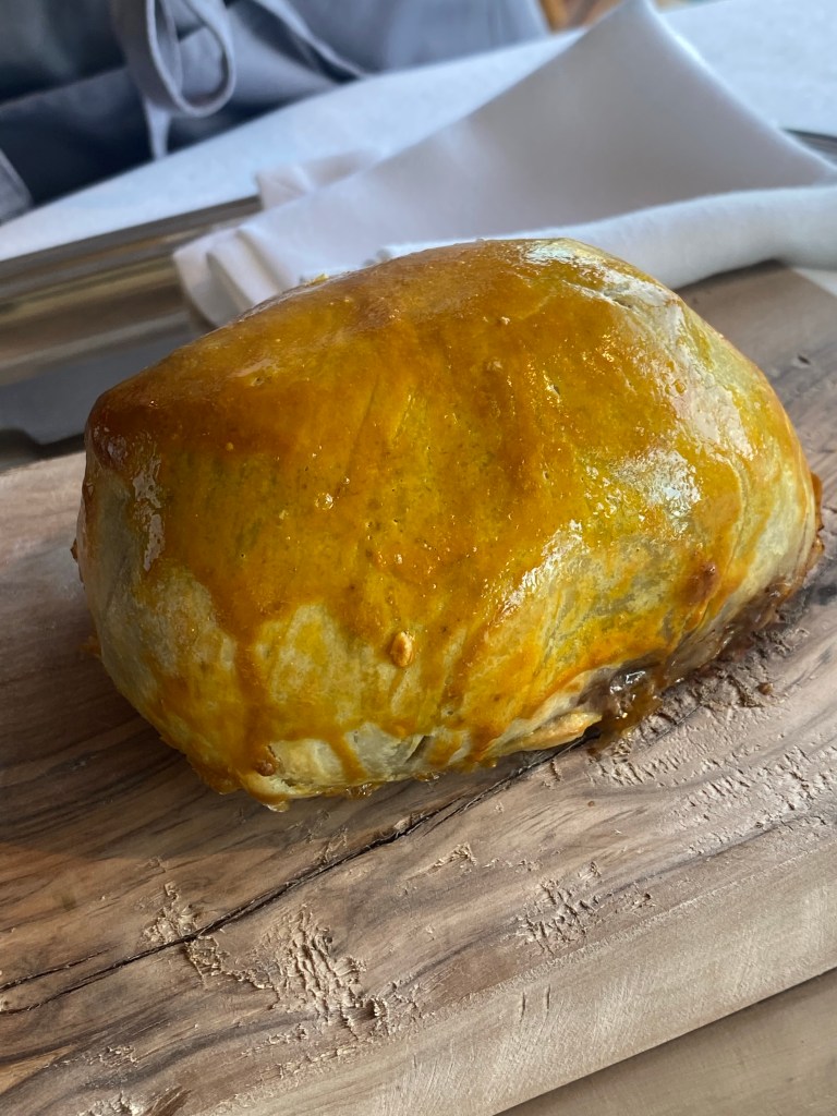 Y algo nuevo para rematar, la tarta de manzana, muy fina, con una delgada base de hojaldre rebosante de mantequilla y un punto muy crujiente. Una pasada que también sitúo entre las mejores, especialmente porque le pasó como al coulant, que se puso tan de moda que algunos hasta las ponían medio industriales y congeladas.