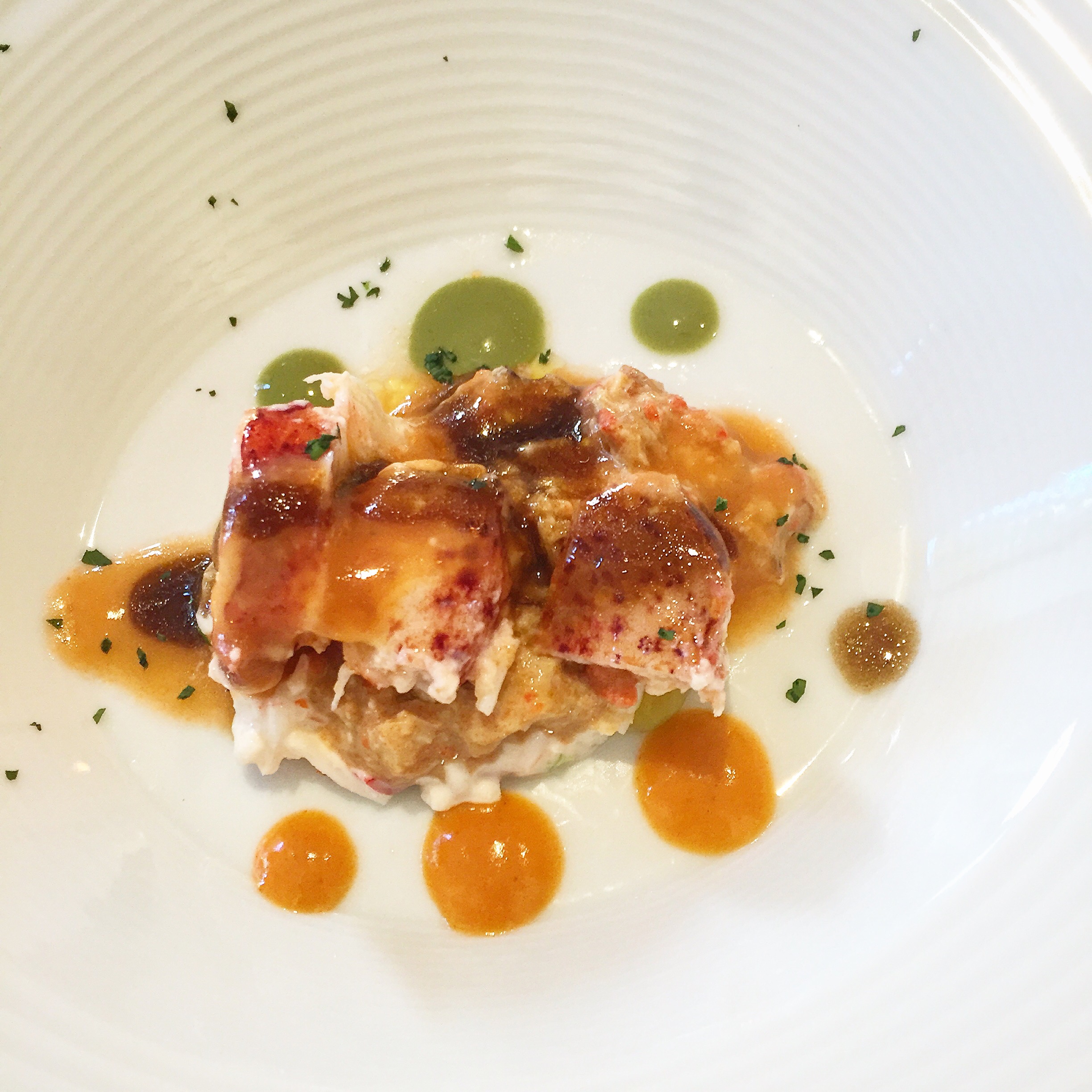 El salpicón de bogavante es ortodoxo y delicioso. Al emperador de los crustáceos le sirve de base un lecho de buey de mar, un marisco tan humilde en otros tiempos como apreciado por muchos. Dos toques de mojo rojo y mayonesa de algas lo completan a la perfección. Nada más necesita.