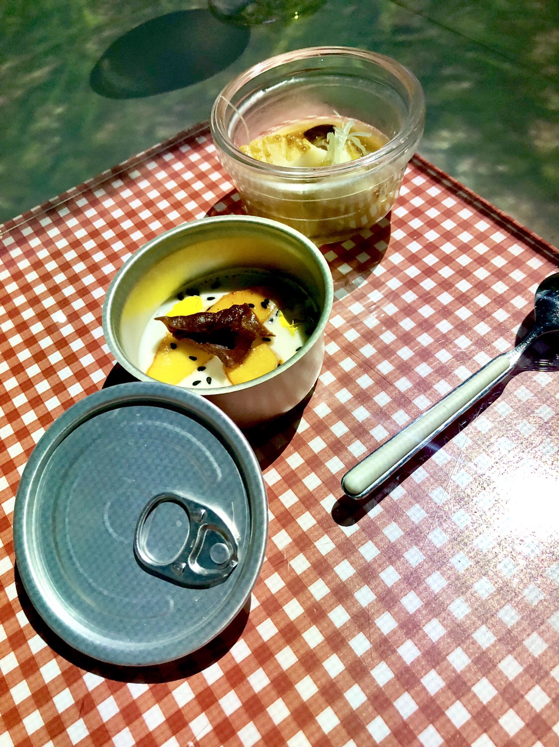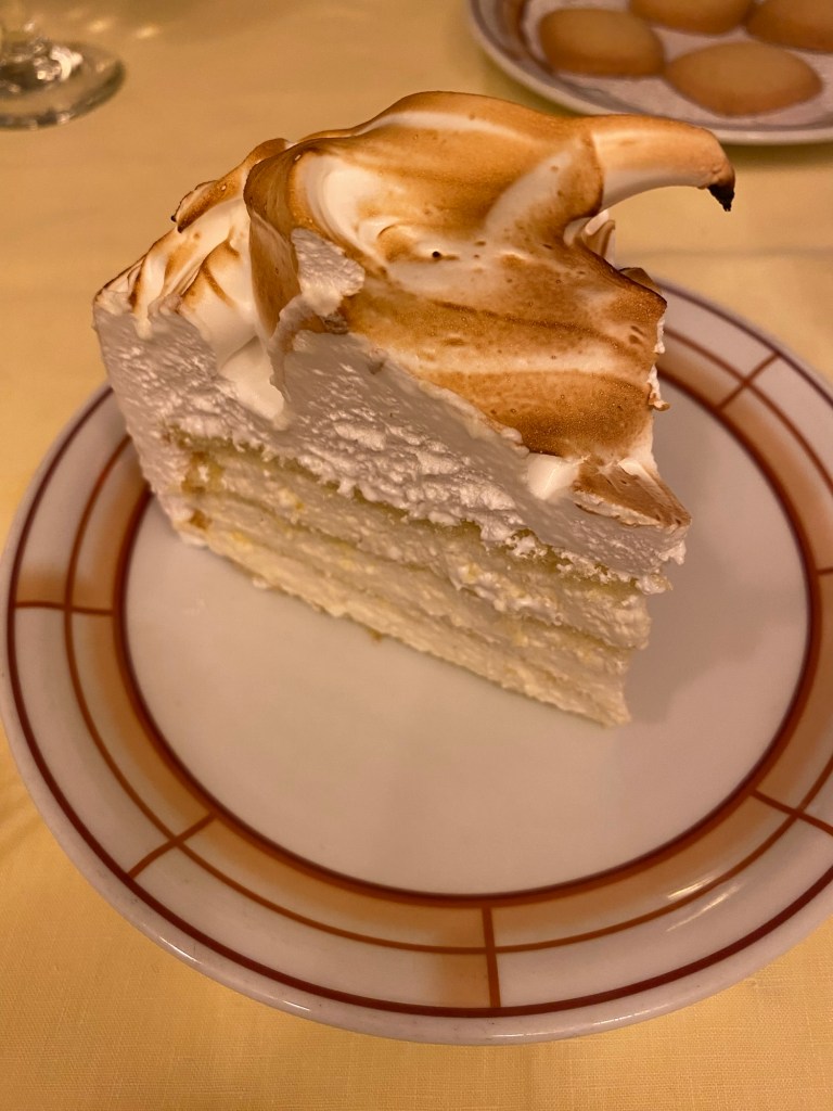 Como no podía ser menos con tanto francesismo, sigue por los caminos más ortodoxos con las ciruelas con islas flotantes de vainilla y una teja de caramelo, y de verdad, que es un postre diferente y delicioso.