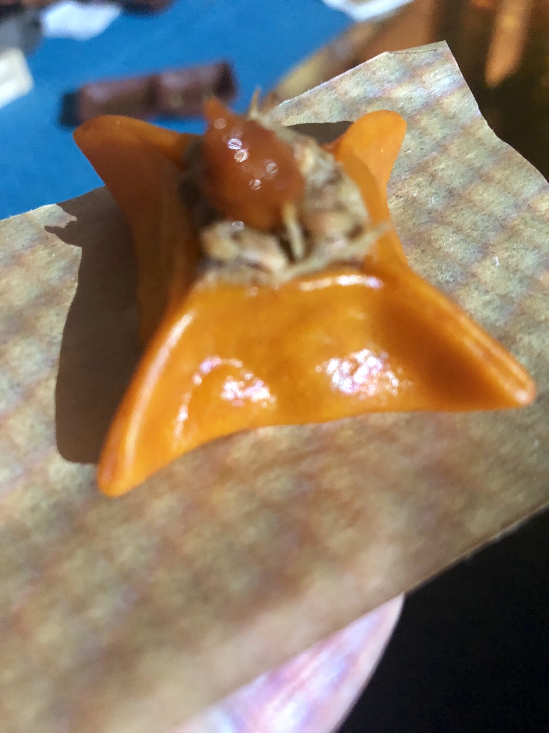 La cigala es crujiente gracias a esa delicada cobertura que es la pasta kataifi, algo así como un cabello de ángel crocante. Junto a ella brassica rapa con jengibre y una estupenda y aterciopelada salsa muselina.