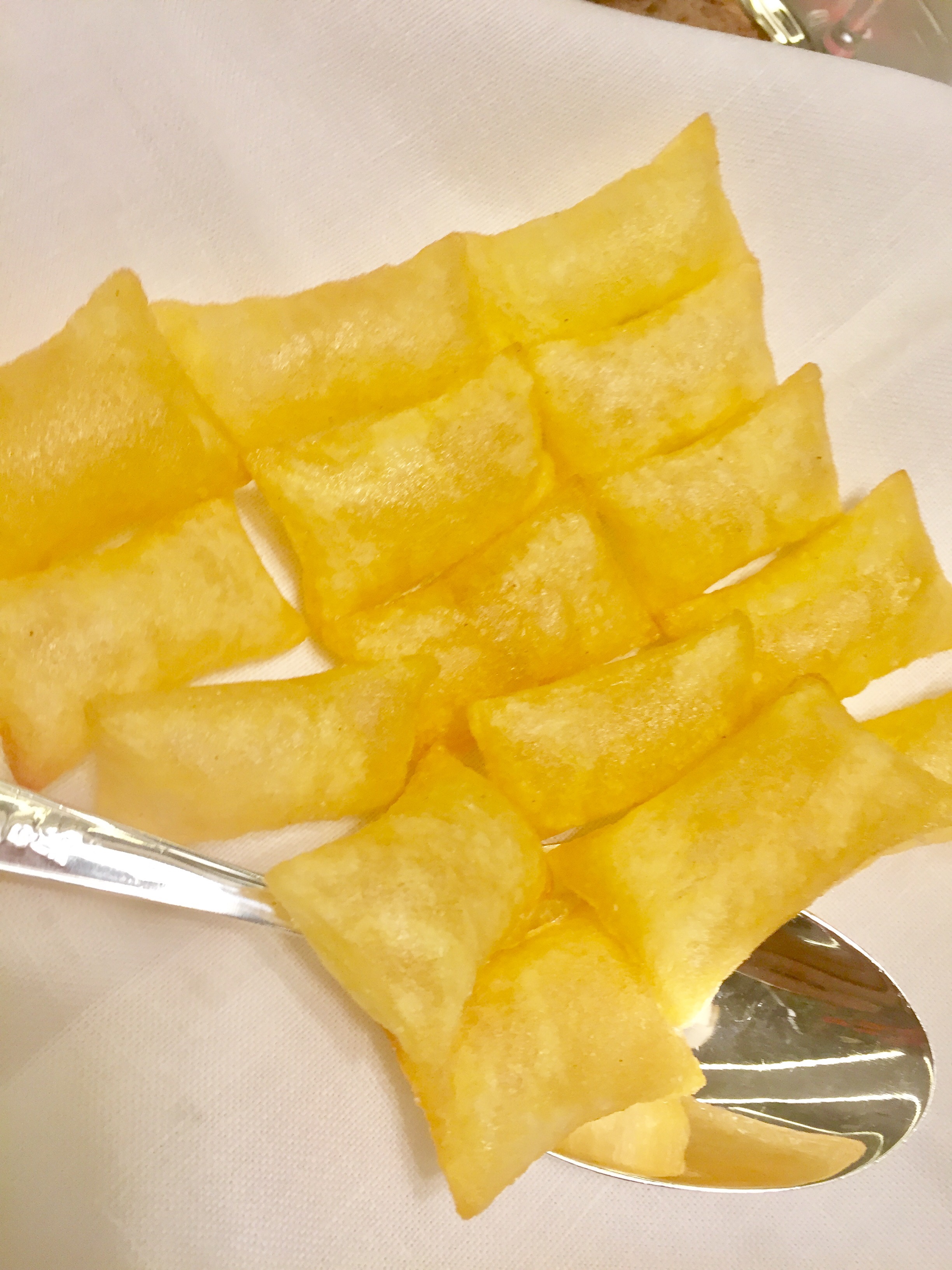 Pero quizá nada es tan impresionante como la elegancia de esas patatas suflé que en ninguna parte hacen mejor. Son enormes, doradas y perfectas, restallantes. Estallan en la boca porque el exterior es crujiente y el interior puro aire. Una especia de idealización de la simple patata frita.