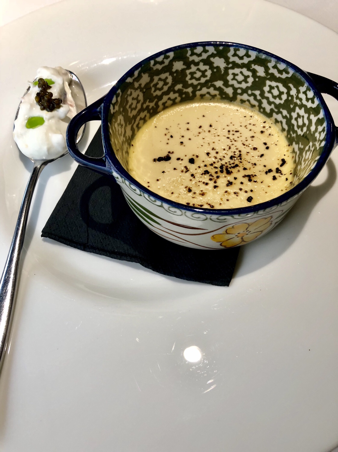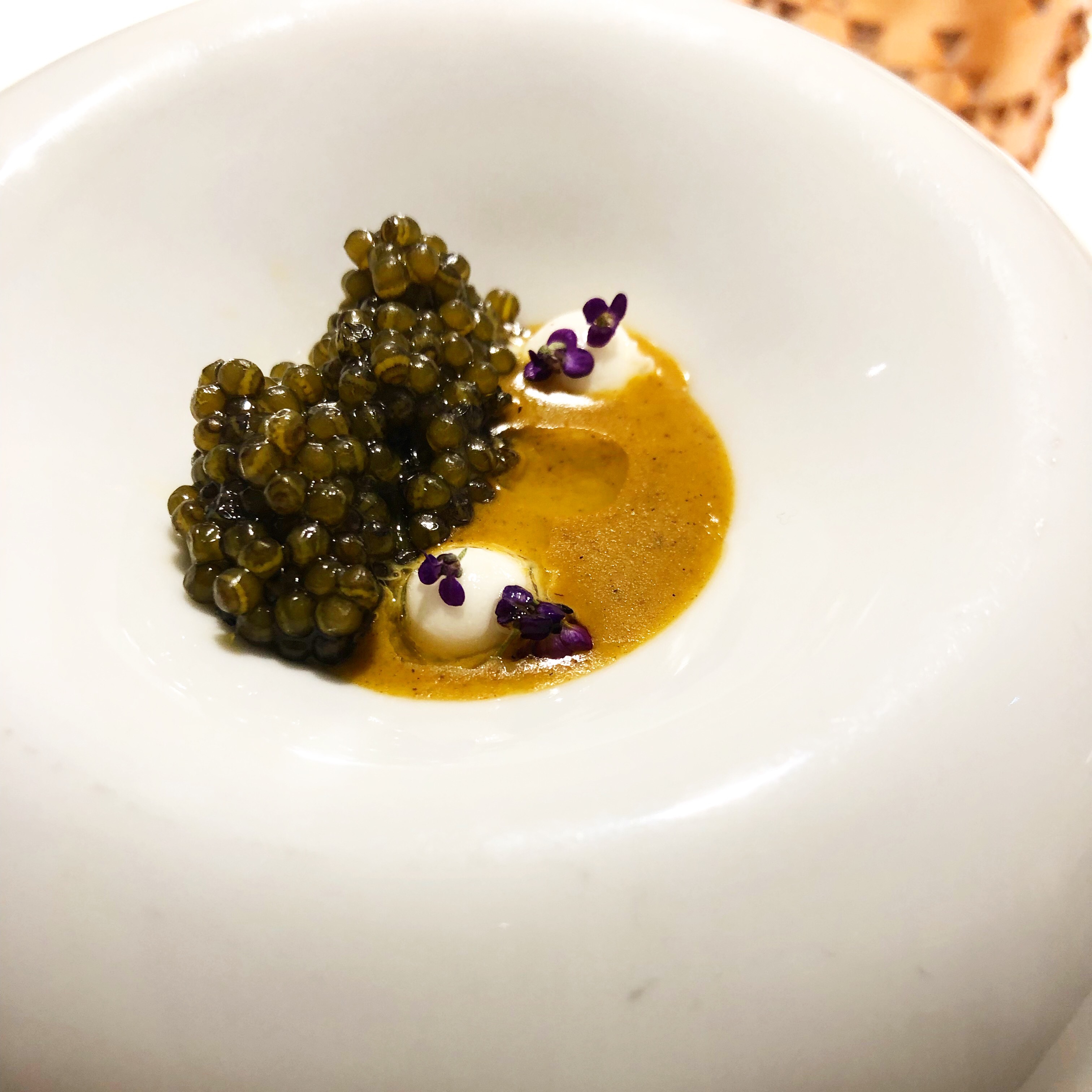 Hay que tener imaginación y valor para asar levemente el caviar, producto que siempre había tomado intacto. También para añadirle un suave curry. Pues bien eso es -y funciona a las mil maravillas- una delicia llamada caviar asado en horno tandoori con curry Vindaloo y yogur griego.