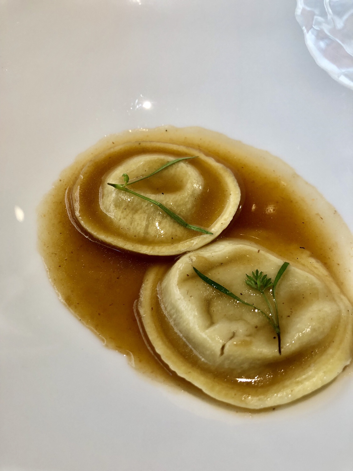 Del ravioli de faisana con caldo de lo mismo me encantó la fluidez de este, el perfecto punto de la pasta y por supuesto, el delicado sabor de la faisana. Hace poco me quejaba ante un amigo del olvido de este ave deliciosa y antaño símbolo de lujo y de opulencia. Y los dioses debieron escucharme, aun sin plegaria, porque empiezo a encontrarla por doquier.