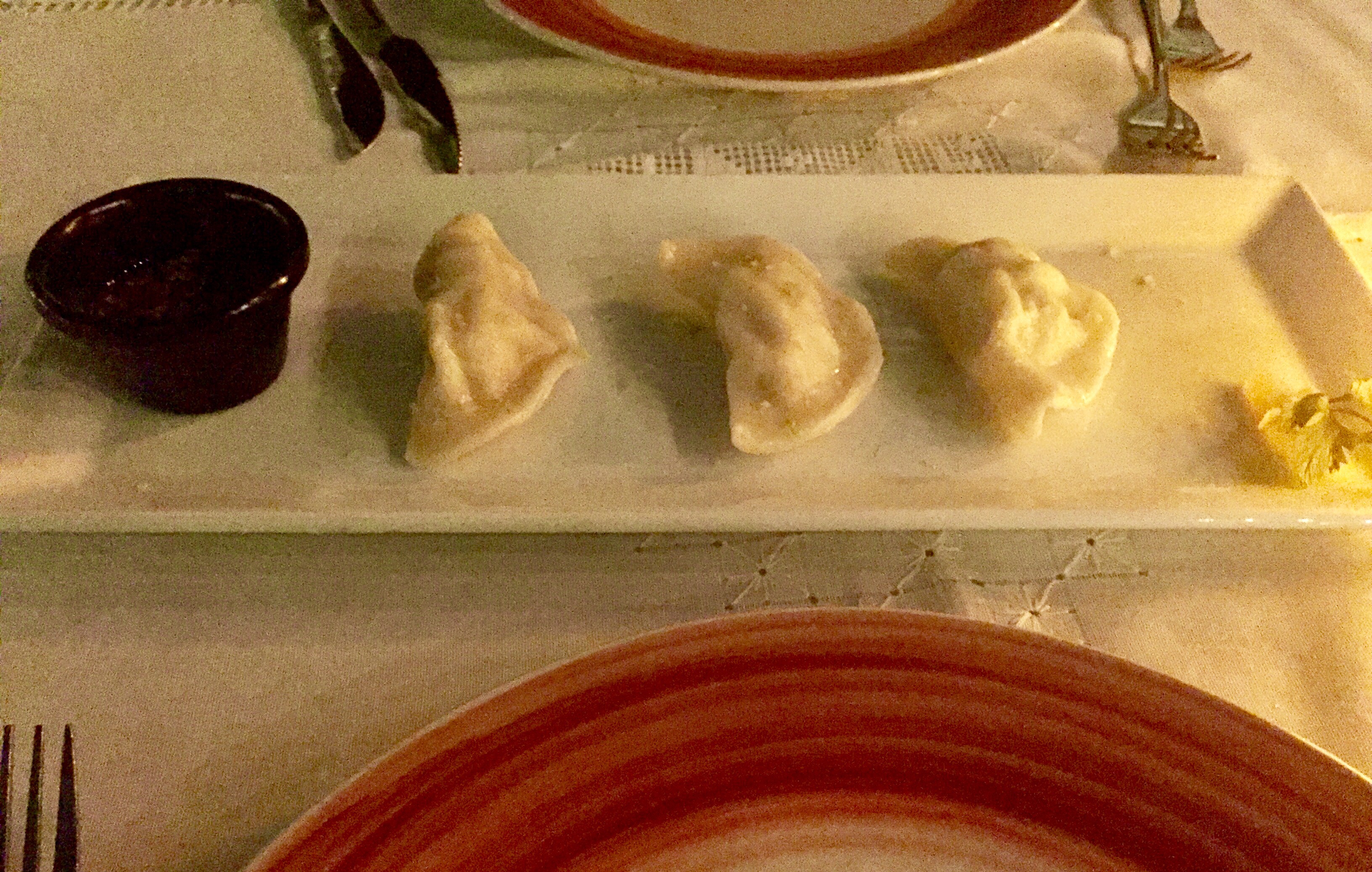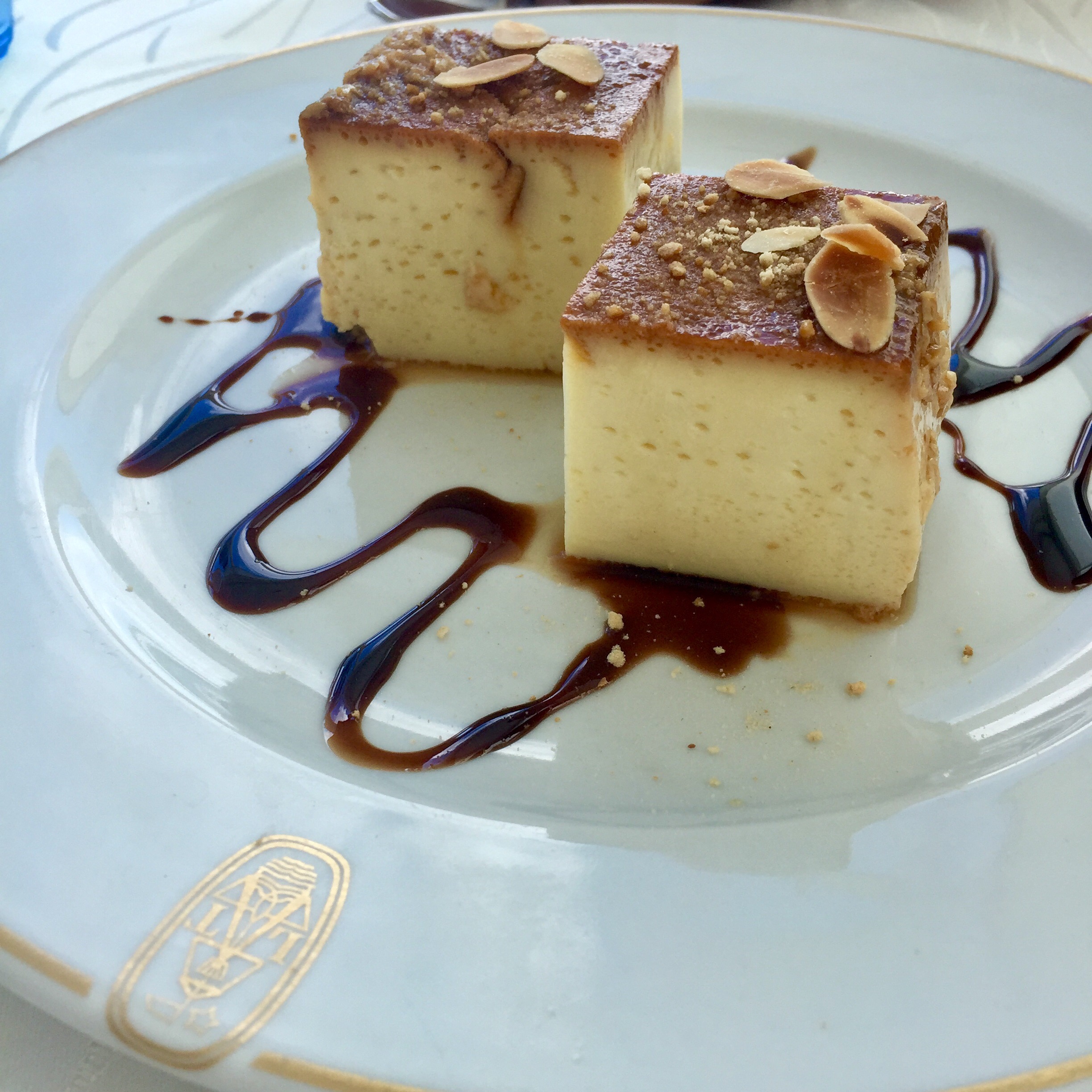 Ya saben que estoy harto de pichón, pero bueno, de unos más que de otros. Este concretamente me encantó. Lo primero porque es auténtica puesta en escena del pasado. Para empezar, se pone un anillo de cristal sobre el plato y se rellena de un líquido ámbar. Es un flan de calabaza que se irá cuajando lentamente.