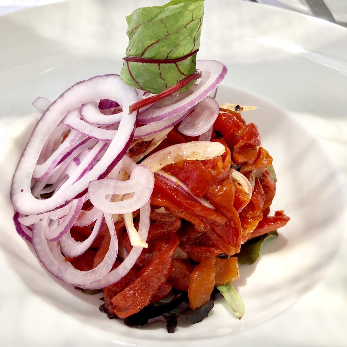 Podía haber tomado entre otras cosas sopa de habas y menta, ensalada de cítricos o ceviche pero me aconsejaron la mozarella con agua de tomates y creo que acerté porque es una sencilla manera de reinterpretar un clásico con esas dulces aguas de tomate y un leve aliño. Todo es suavidad y sensibilidad con un resultado tan fresco como colorista. Casi sin hacer nada.