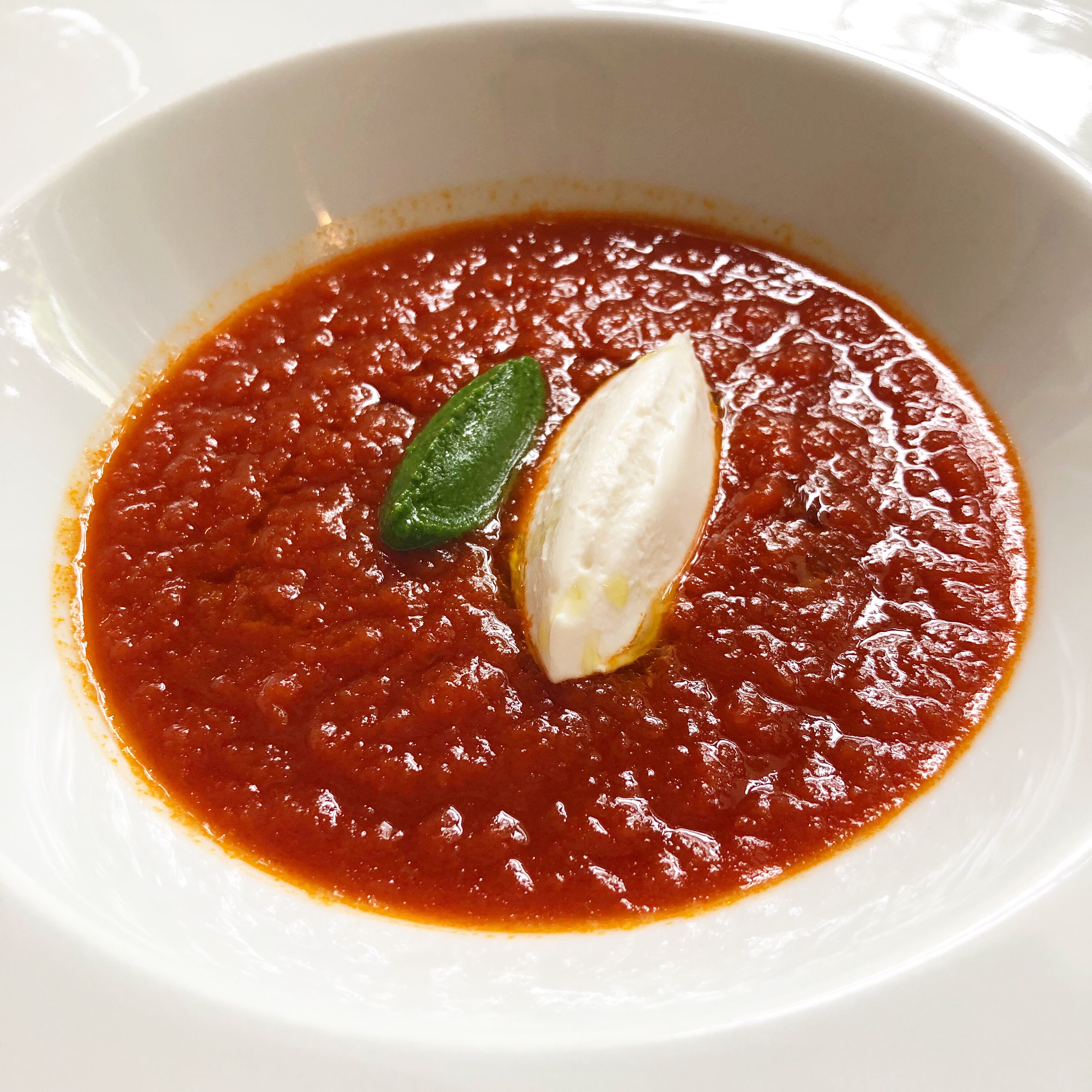 Buen aperitivo para una cremosa y sabrosa burrata acompañada de una original salsa de tomate escabechado. La sirven aparte así que se puede tomar sola pero la salsa sin duda, la mejora.