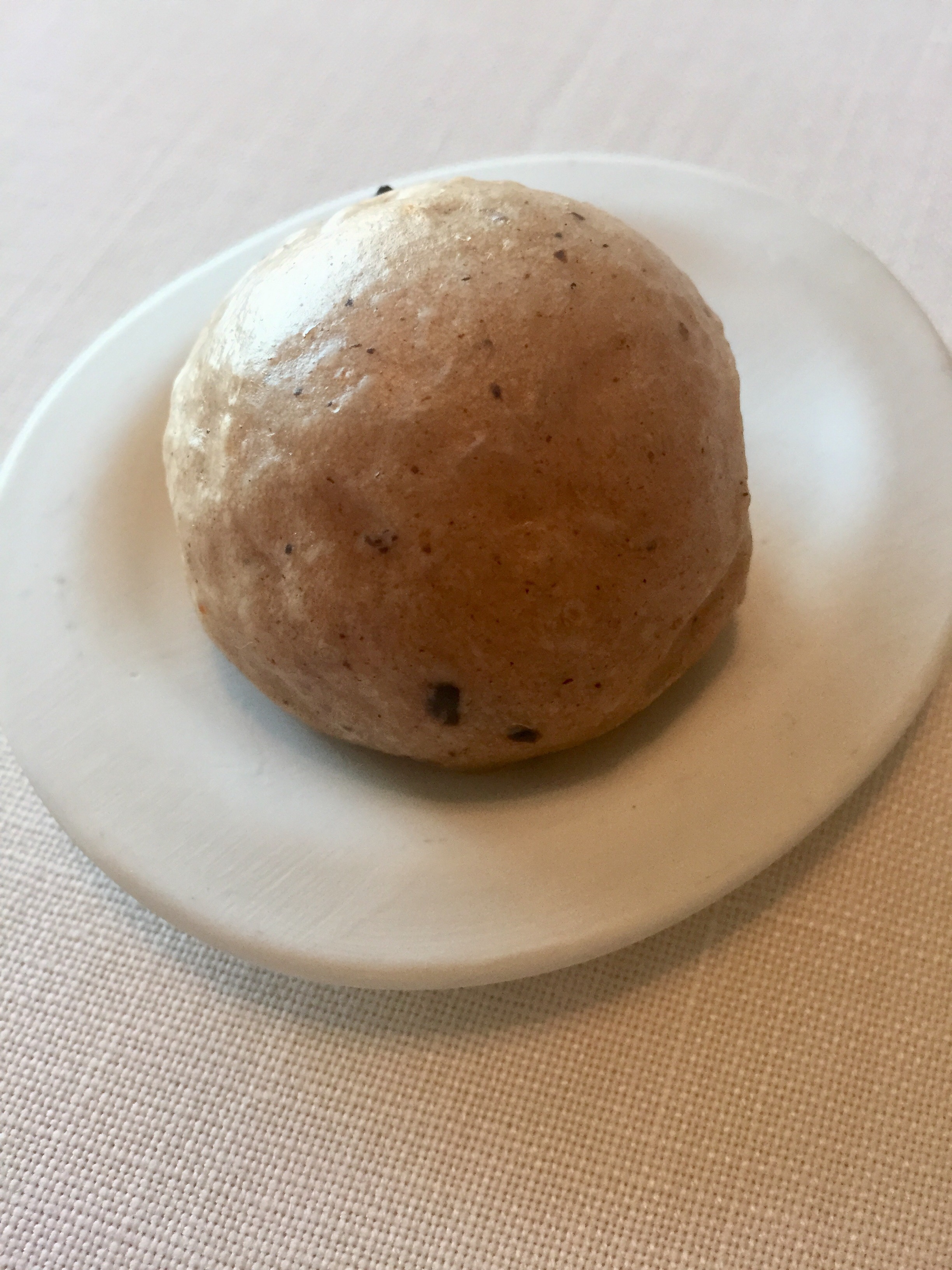Se acaba con un estupendo y muy jugoso waygu A5 de Kagoshima, cebolla trufada con queso Comté ahumado y pan brioche. La carne está llena de infiltraciones de grasa y los acompañamientos le van muy bien salvo, para mi, el queso, porque el intenso Comté de 30 meses y la cebolla le dan un delicioso sabor, pero acrecientan las notas grasas de la carne. Lo que me ha encantado es la lechuga con vinagreta trufada y el brioche horneado al momento. Todo junto compone un bocadillo memorable.