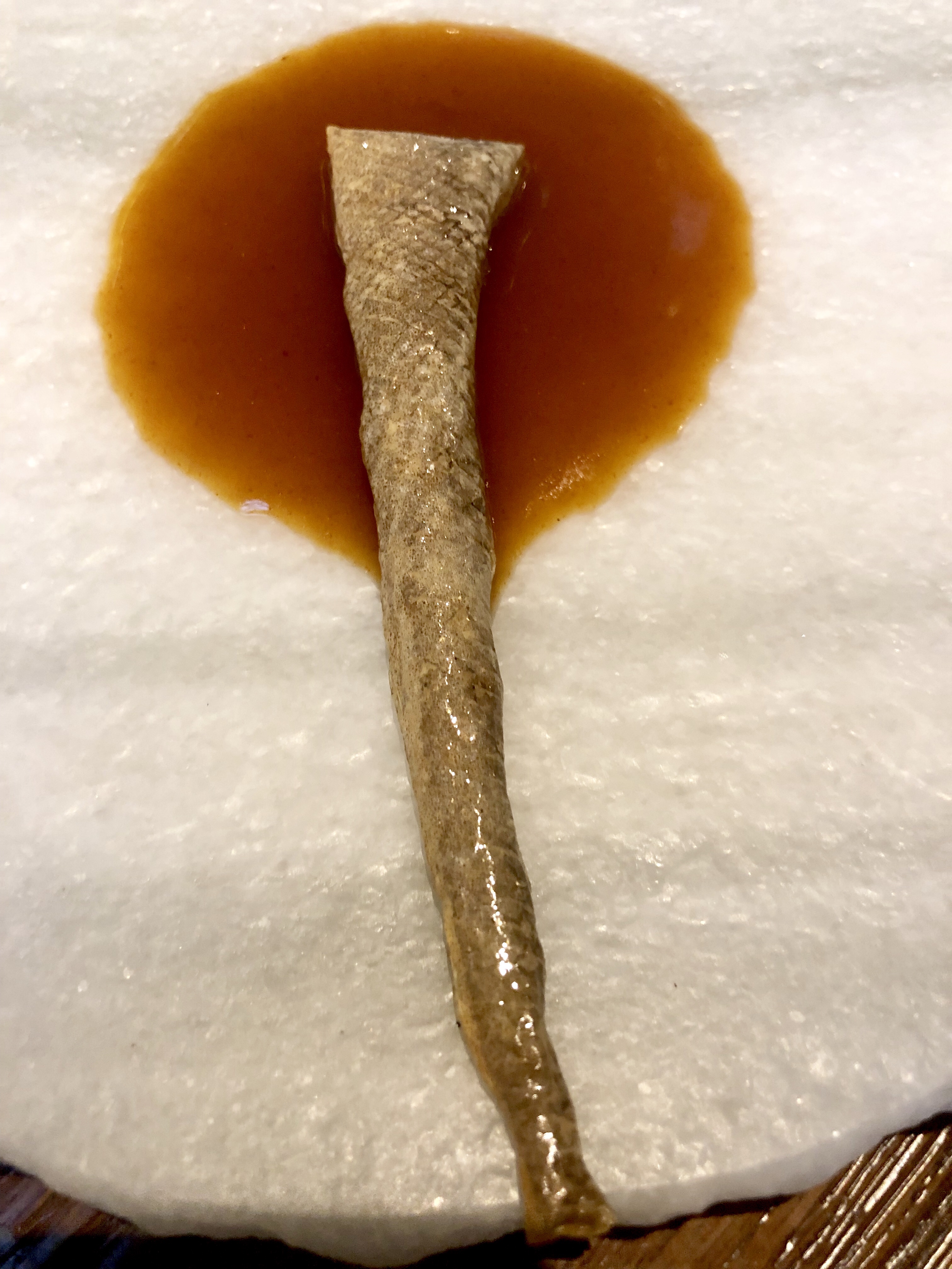 Les confieso que, aunque nunca fui un rendido fan, me gustaba mucho el Dani García de la alta cocina desde que lo conocí en sus comienzos en Ronda. También, que no aprecio demasiado las versiones comerciales y facilonas en las que anda ahora. Y les digo todo esto para que valoren, en su justa medida, lo que les voy a contar, porque me ha gustado mucho la vuelta a la elegancia de altos vuelos con su Smoked Room. Y no lo digo por el local, sumamente oscuro y con pinta de discoteca de la Europa del Este, sino por la ambición y riqueza de su cocina. Parece una barra japonesa (más dos mesas en la sala adyacente, máximo 14/16 persomas) y se articula en torno al humo (no en vano está dentro de su restaurante Leña) pero es mucho más que eso, porque se trata de una exhibición de alta cocina en la que abunda la vanguardia y el cosmopolitismo pero también lo popular y lo más ancestral o sea, fuego y brasas.