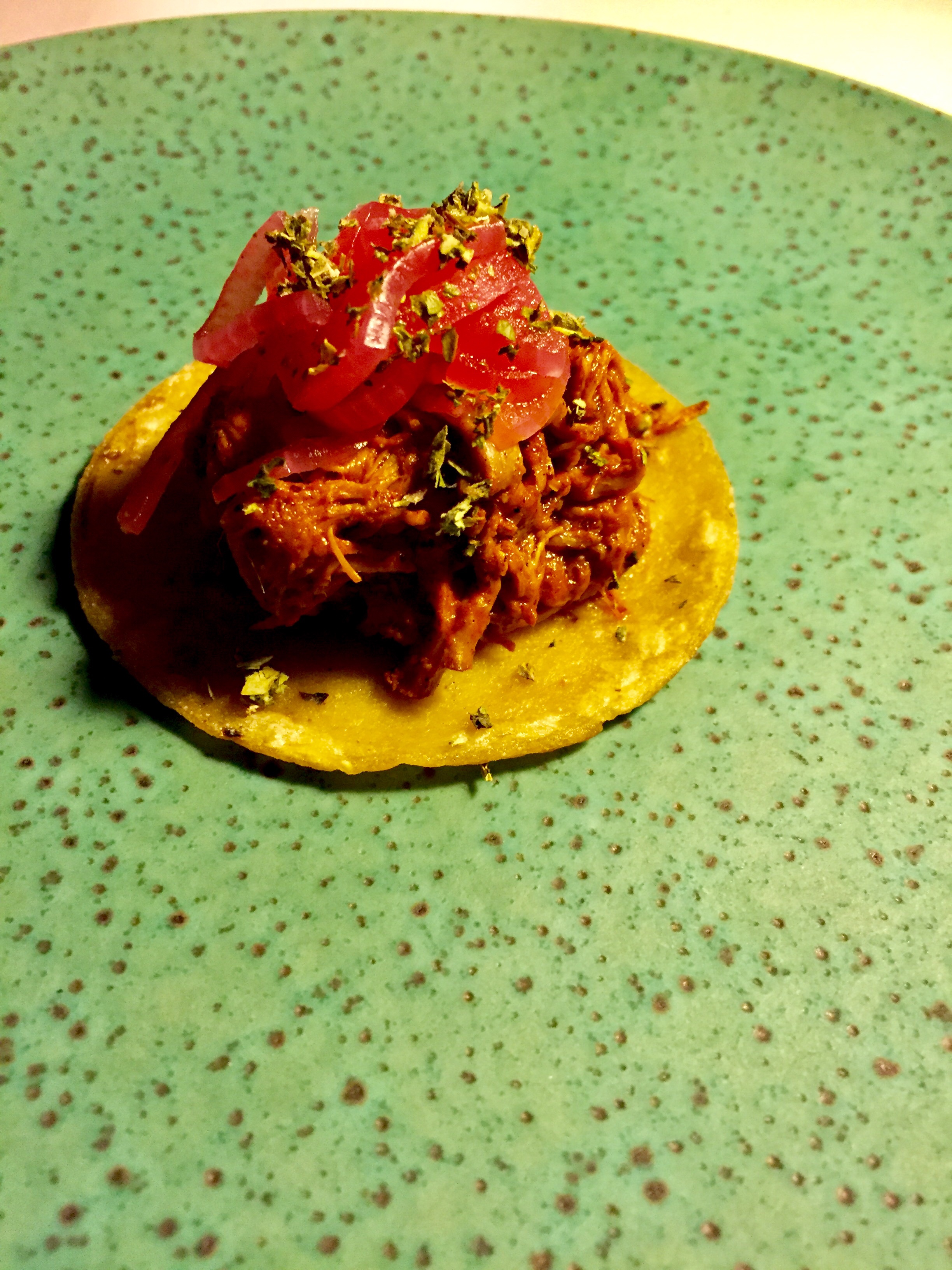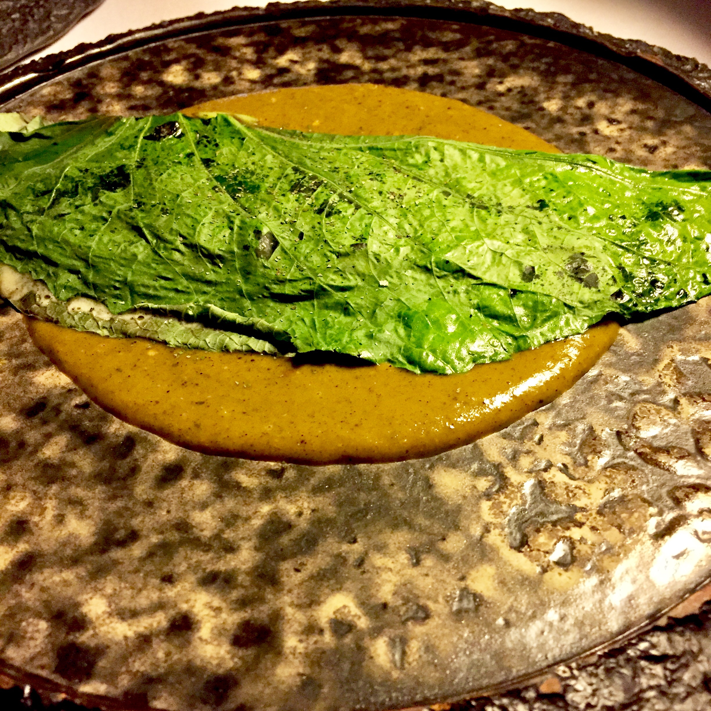 Solo tiene menú degustación y nada más que uno. Vale la pena. Empieza con un pan horneado en madera de lichi, algo ácido, al que acompaña una mezcla grasa vegetal y animal sumamente rica e interesante: crema de aguacate a la brasa y mantequilla de Normandía. Toques ahumados y untuosos.