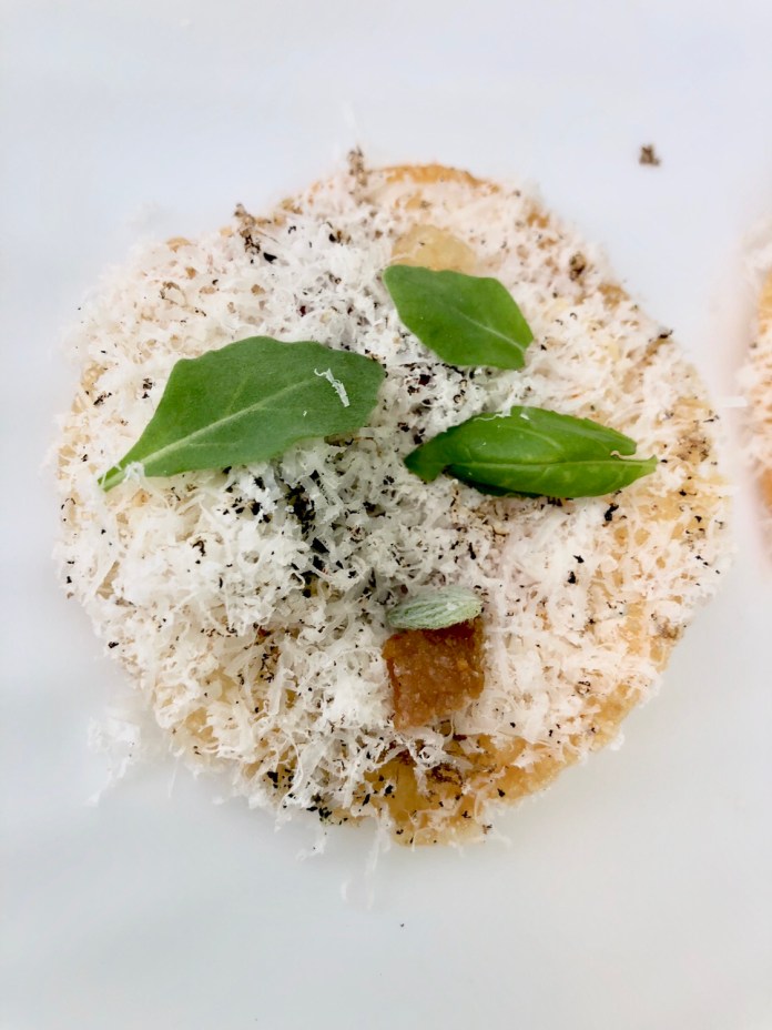 Me gustó el queso de macadamia, manzana y apio, una refrescante entrada que podría ser un postre. Es bueno romper las barreras y el chef tuvo al mejor maestro, el que cambió el modo de comer, Ferrán Adria. Se trata de un sorbete de manzana y apio con queso y nueces. Ni más ni menos.