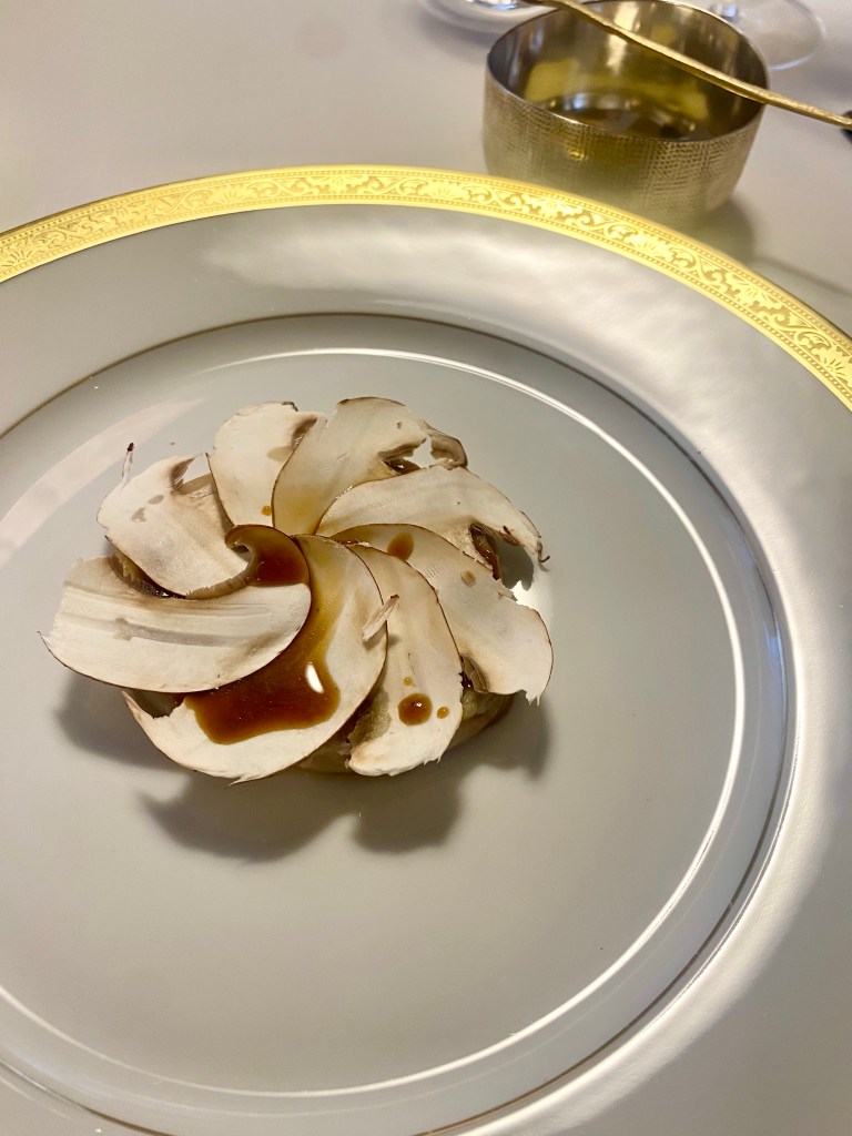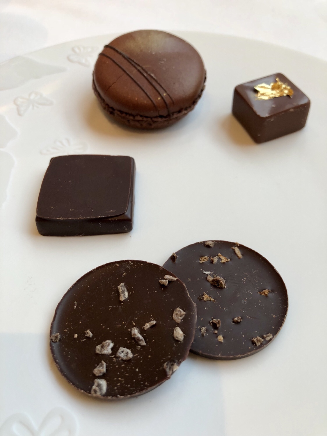 En cualquier sitio menos cuidadoso, esto ya sería la perfección pero aún faltan las mignardises que, si no les apetecieran después de tanto, bastaría para deleitarles la simple contemplación de los platos, cosa que les recomiendo hagan desde que entren porque hay vajillas (de Raynaud muchas de ellas) suntuosas que raramente se ven en restaurantes.