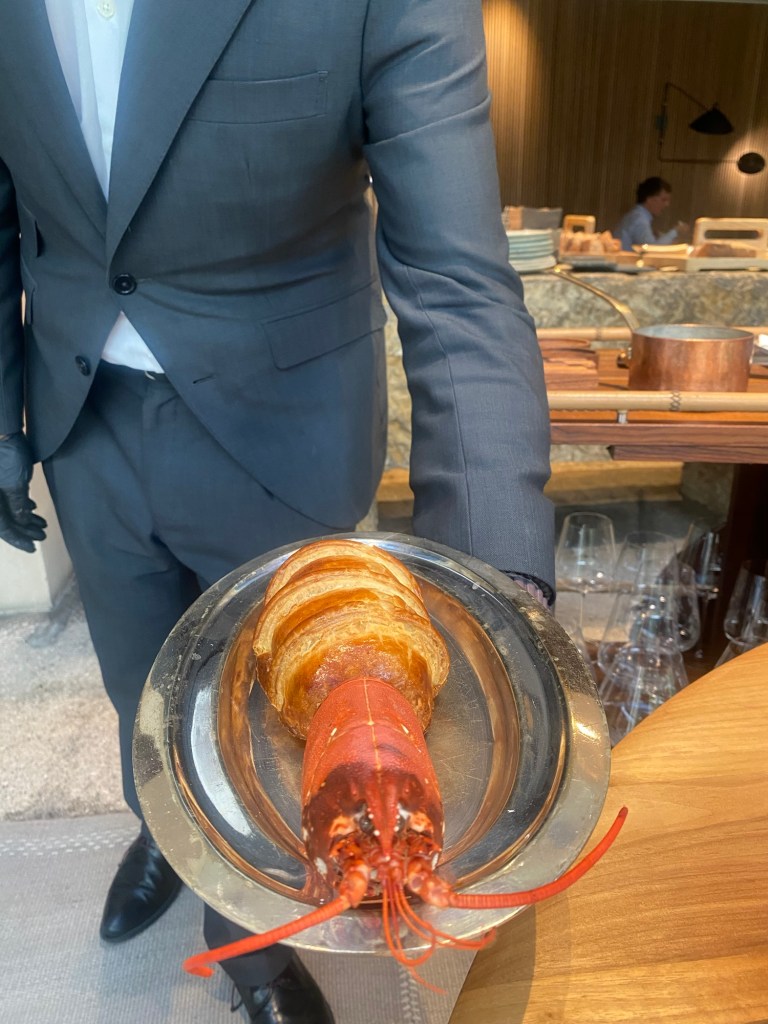 El cangrejo real de Noruega se muestra vivo cuando presentan los manjares del día. Para no alterar su delicado sabor lo hacen ensalada Waldorf, con la justa cantidad de manzana, nueces y mostaza, y la untuosidad vegetal del aguacate.