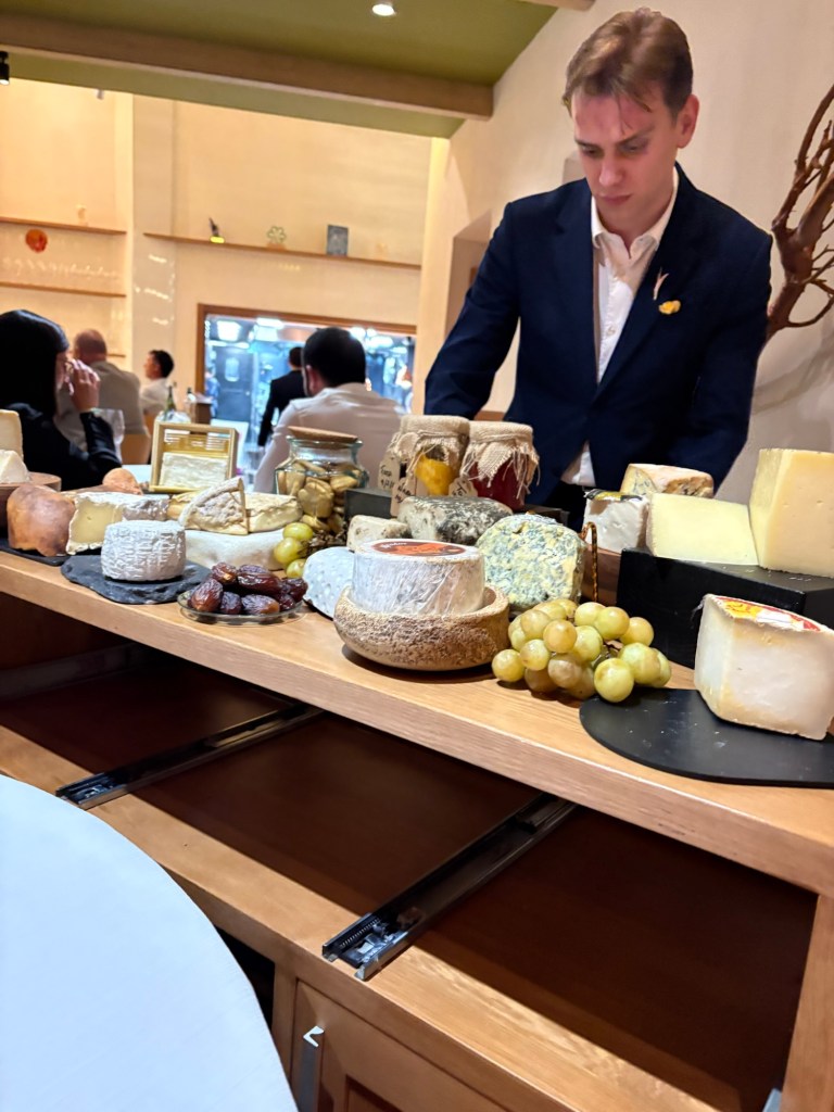 Hace mucho que no hay tabla de quesos sino tres grandes mesas. Escuchar la descripción y dejarse llevar es un verdadero placer que no deja llegar a los postres.