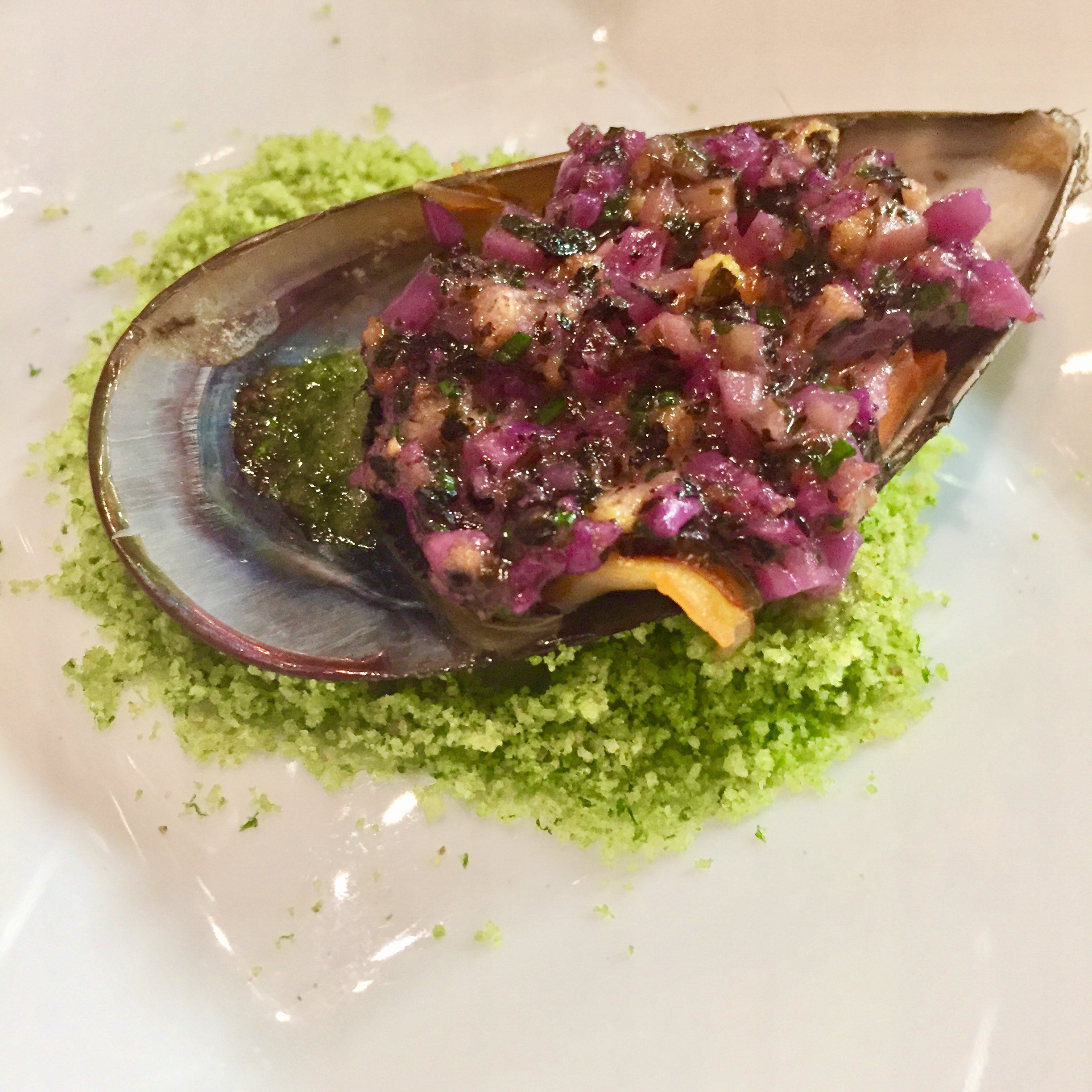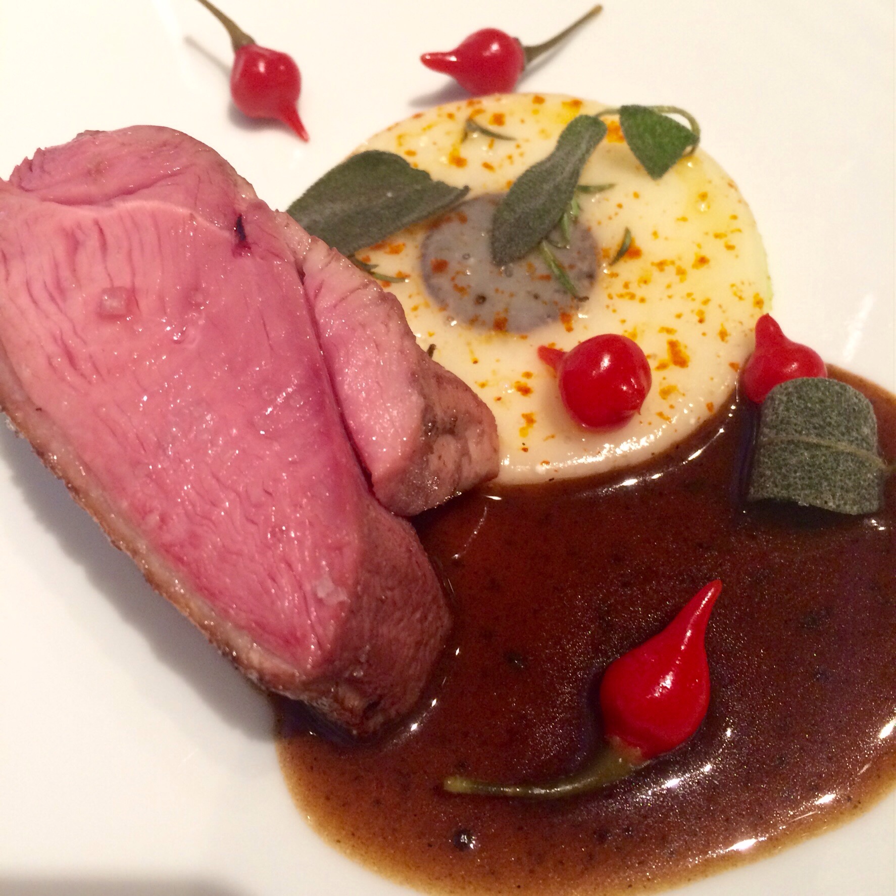 Me han parecido muy originales y sabrosas las albóndigas de pato con su magret curado (se lo pone por encima) y chimichurri. Mezcla untuosas con un poco de picante y el dulzor del puré de chirivía.
