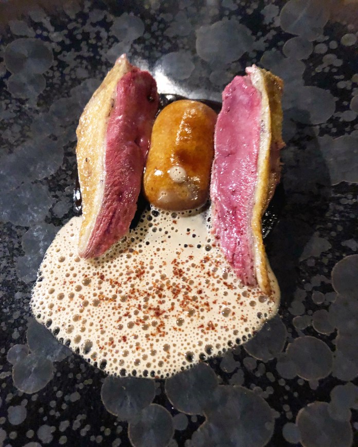 Me gustó el queso de macadamia, manzana y apio, una refrescante entrada que podría ser un postre. Es bueno romper las barreras y el chef tuvo al mejor maestro, el que cambió el modo de comer, Ferrán Adria. Se trata de un sorbete de manzana y apio con queso y nueces. Ni más ni menos.