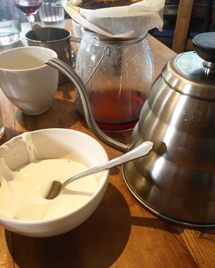 Y llega el café… Y casi no acaba de llegar porque no hay más opción que el de olla, a la antigua usanza. Lo siento mucho pero este tarda eternamente (eran otros tiempos, otros ritmos) y para mí donde esté un buen espresso que se quite lo demás. No hay que hacer mucho caso de estos nórdicos porque son muy exagerados. Hablaba antes de Von Trier y el grupo Dogma murió por exceso de normas o más bien de limitaciones autoimpuestas (que si no montaje, que si solo sonido directo, que si no luz añadida…), así que no exageremos por favor, aunque la presentación sea tan bonita. O pongamos una maquinita de Nespresso, por si acaso.