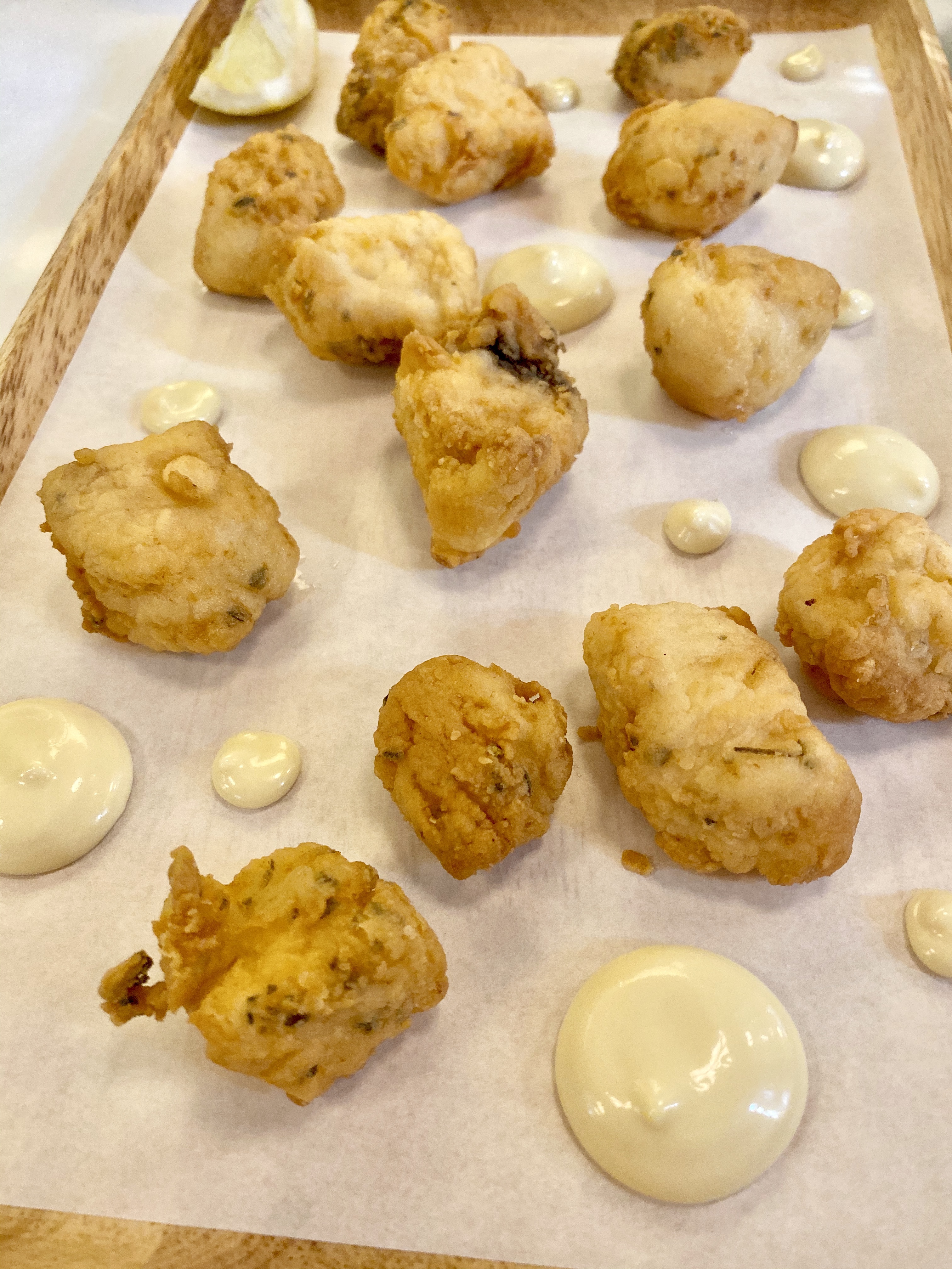 Como muestra de los famosos fritos de La Milla, puntillitas (o chopitos si lo prefieren), pequeñas, jugosas, muy crujientes por fuera y tiernas y suaves por dentro.