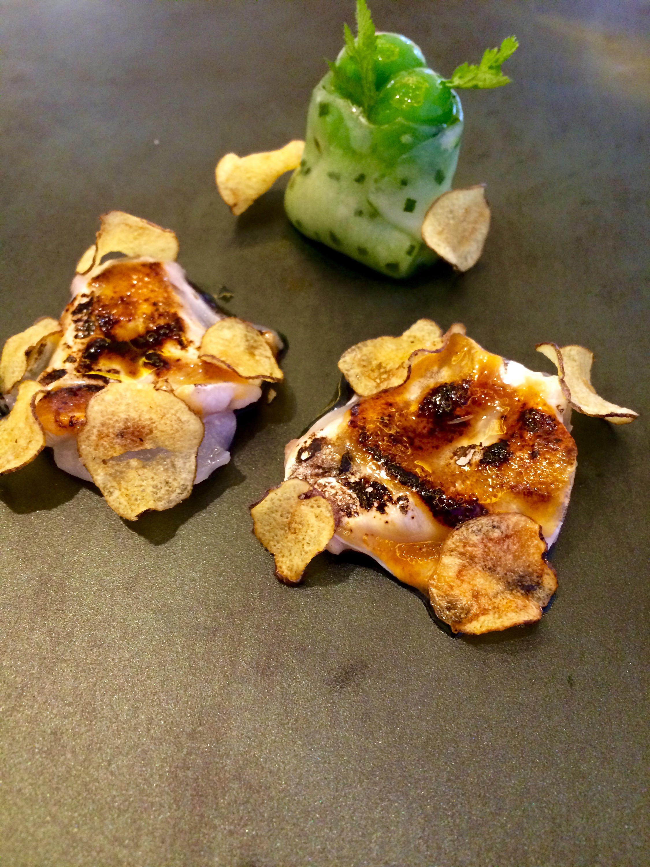 La raya con pimienta de Jamaica, patatas Hong Kong y chile chipotle es una bellísimo cuadro que nos hace preguntarnos qué seria de la moderna cocina española sin la despensa mexicana, ese maravilloso tesoro que ya usaba el gran Adriá y ahora emplean con profusión Diego Guerrero, Estanis Carenzo y hasta los japos más innovadores.